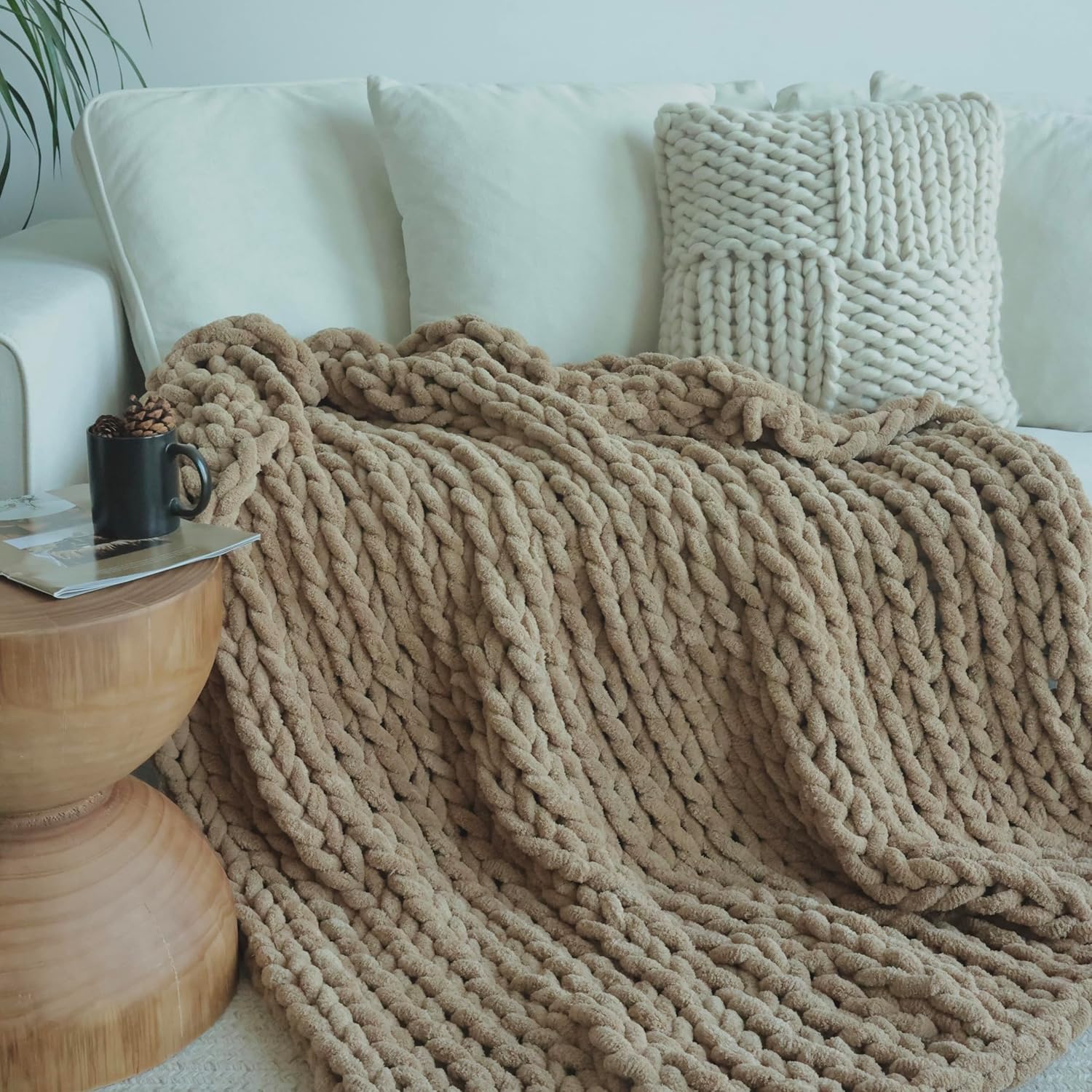 Maetoow Chenille Chunky Knit Blanket Throw (60×80 Inch), Handmade Warm & Cozy Blanket Couch, Bed, Home Decor, Soft Breathable Fleece Banket, Christmas Thick and Giant Yarn Throws, Khaki