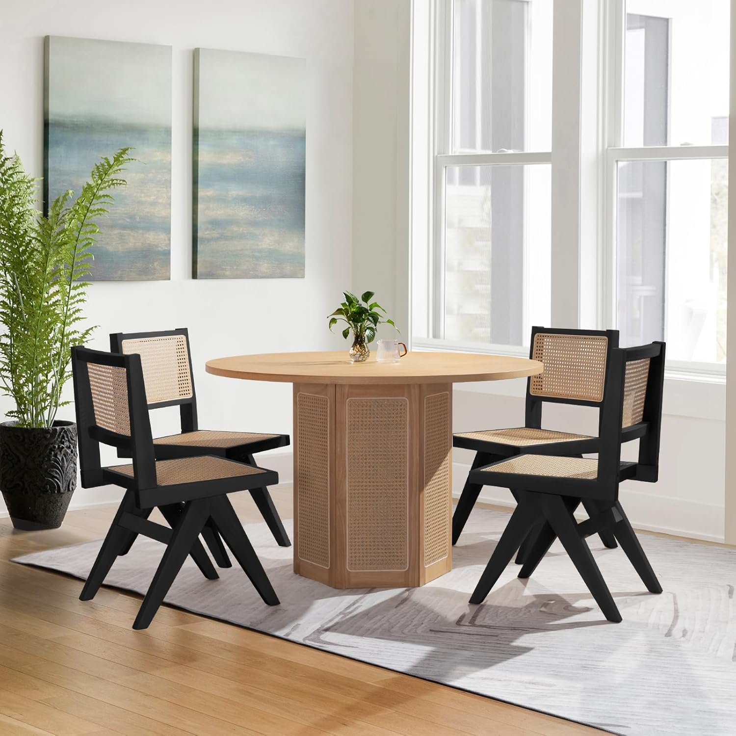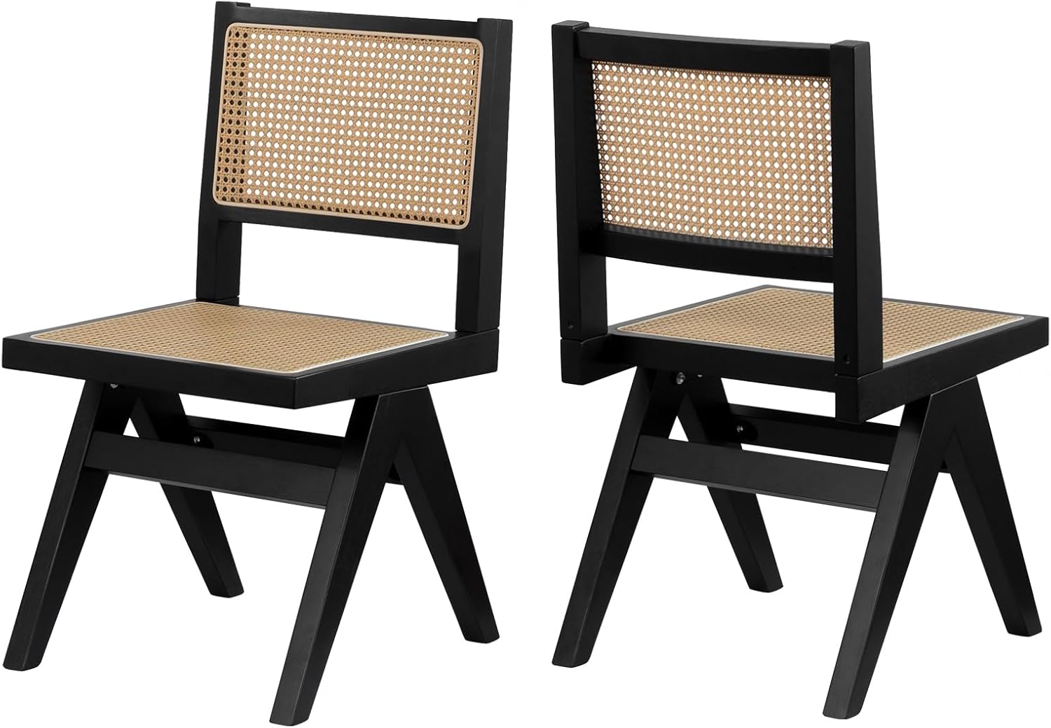 Black Cane Dining Chairs Set of 6, Armless Rattan Kitchen Chairs for Dining Room