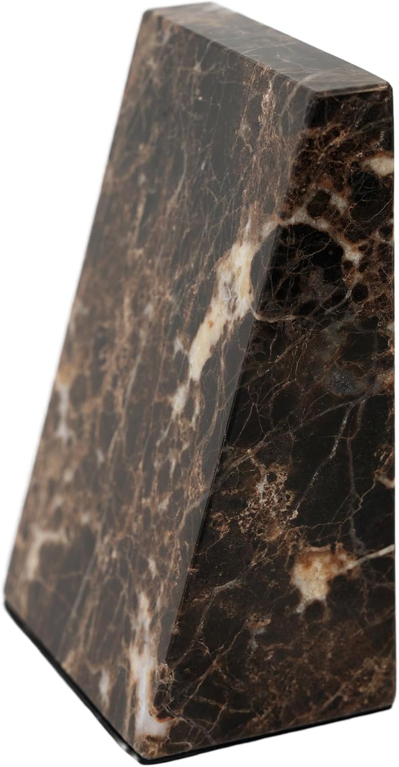 Decorative Bookends for Bookshelves, Set of 2 Marble Bookends for Living Room, Office, Bedroom, Heavy Duty,2 Pieces, Brown
