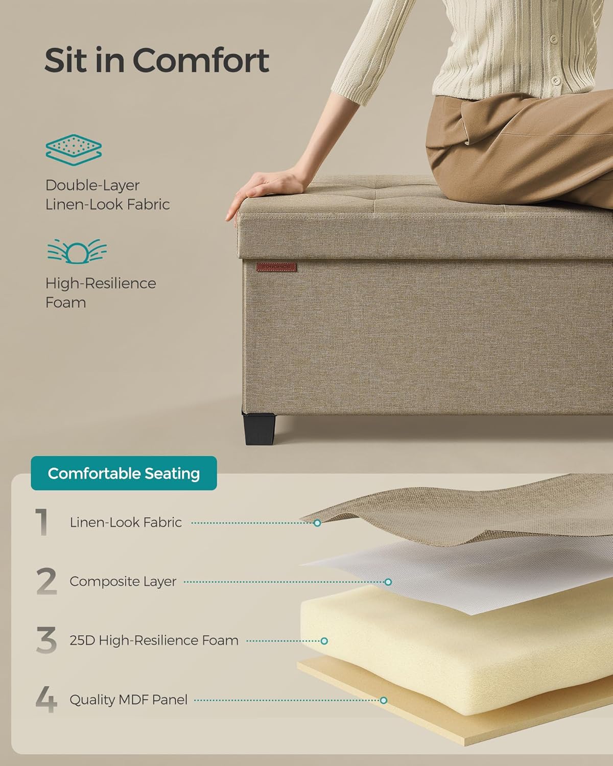 - ăELEGANT DESIGN, ENDURING COMFORTăThis ottoman boasts a chic linen-look surface with an elegant tufting design, adding a stylish touch to your space. The double-layer fabric and high-resilience foam ensure lasting comfort for relaxation
