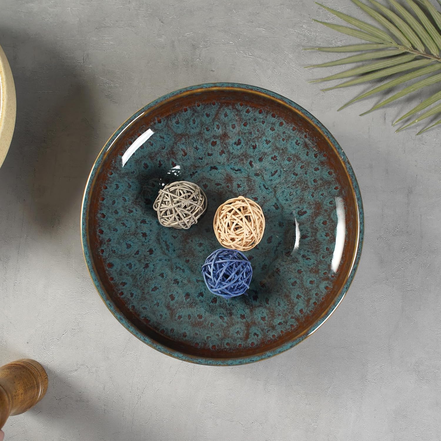 Ceramic Fruit Bowl for Kitchen Counter,Decorative Pedestal Bowl for Table Countertop,Large Footed Serving Bowl,10.2 Inch (peacock Green)
