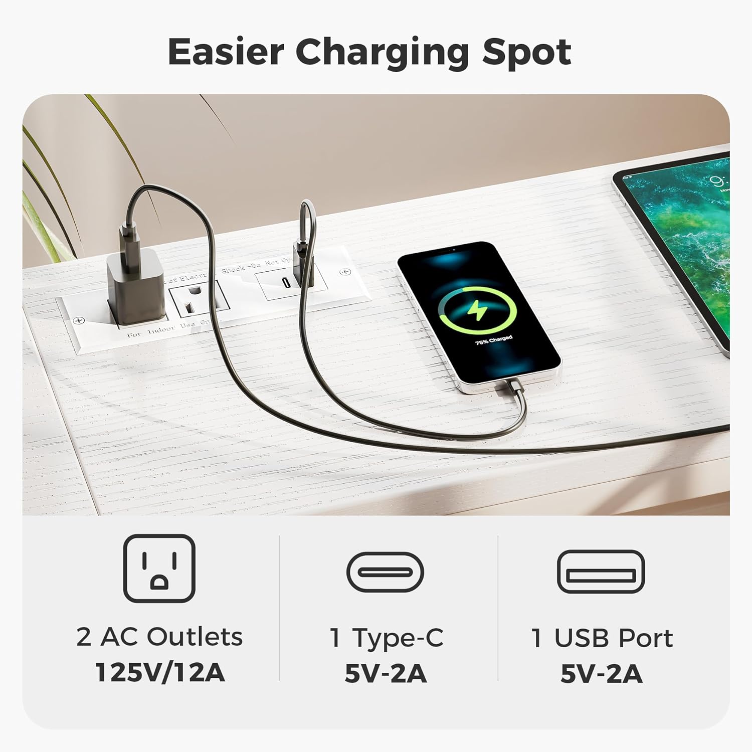 - [Welcome Power Outlets]: Invite this narrow console table to inspire your life! 2 outlets, 1 USB Port and 1 Type-C port are totally enough for your charging needs. Lamps, phones, iPad, fans, even decorative light strings are all covered