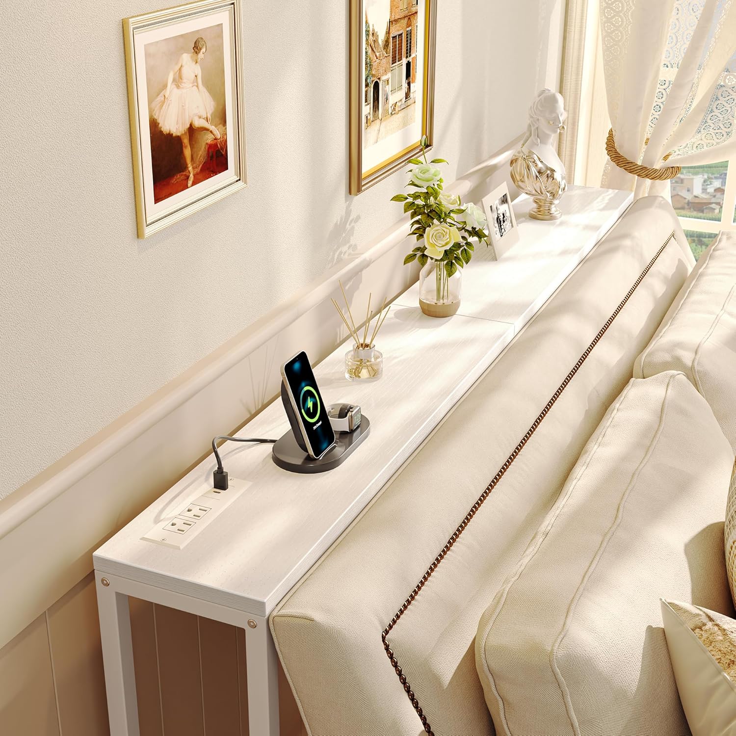 SUPERJARE Console Table with Outlet, 63 Inch Sofa Table with Charging Station, Narrow Entryway Table, Skinny Hallway Table, Behind Couch Table, for Living Room, Plants, White