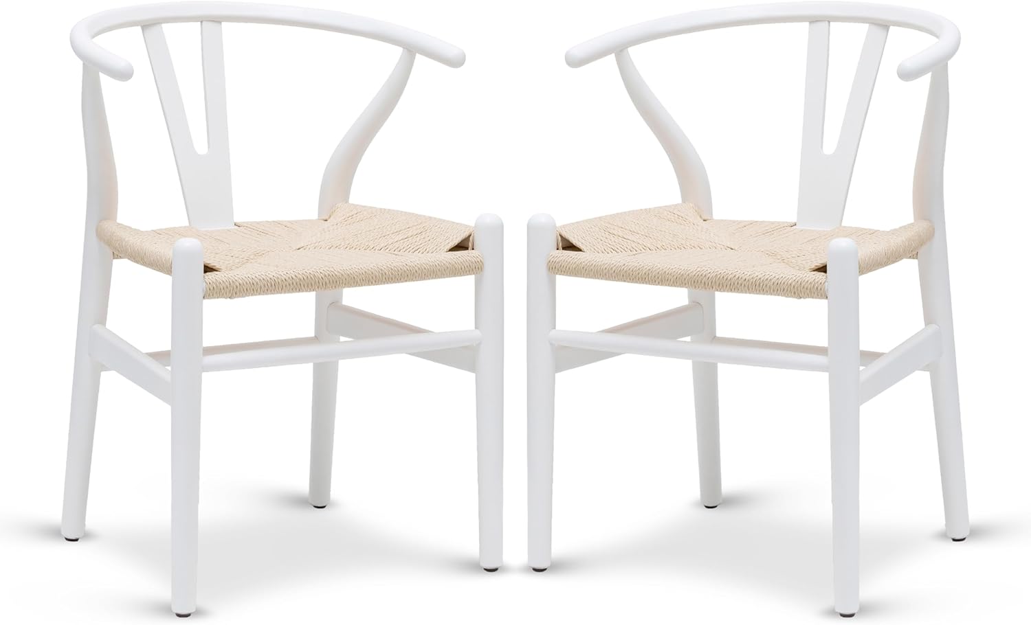 POLY & BARK Weave Dining Chairs – Mid-Century Modern Wishbone Dining Chairs with Arms, Solid Wood Frame, Indoor Use – White – Set of 2 - Ideal for Dining Room, Kitchen or Stylish Accent Setting