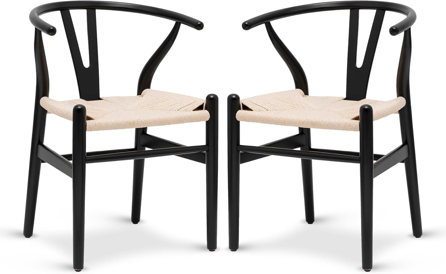 POLY & BARK Weave Dining Chairs – Mid-Century Modern Wishbone Dining Chairs with Arms, Solid Wood Frame, Indoor Use – Black – Set of 2 - Ideal for Dining Room, Kitchen or Stylish Accent Setting