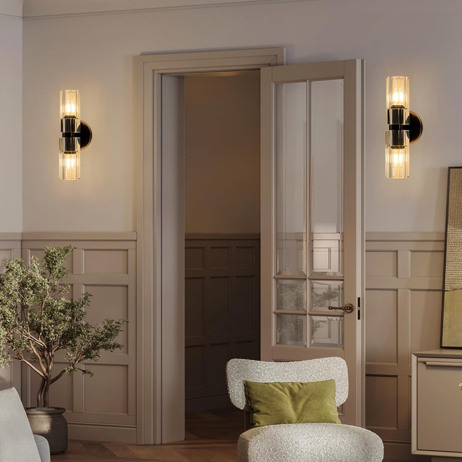 - Rust-Resistant: We understand the importance of maintaining the pristine appearance of your wall lighting accessories. That's why our 2-Light black crystal wall sconce undergoes a rigorous anti-rust and anti-corrosion treatment, ensuring that it remains as stunning as the day you first installed it. No need to worry about unsightly rust or deterioration – this sconce is built to withstand the test of time, even in humid environments.