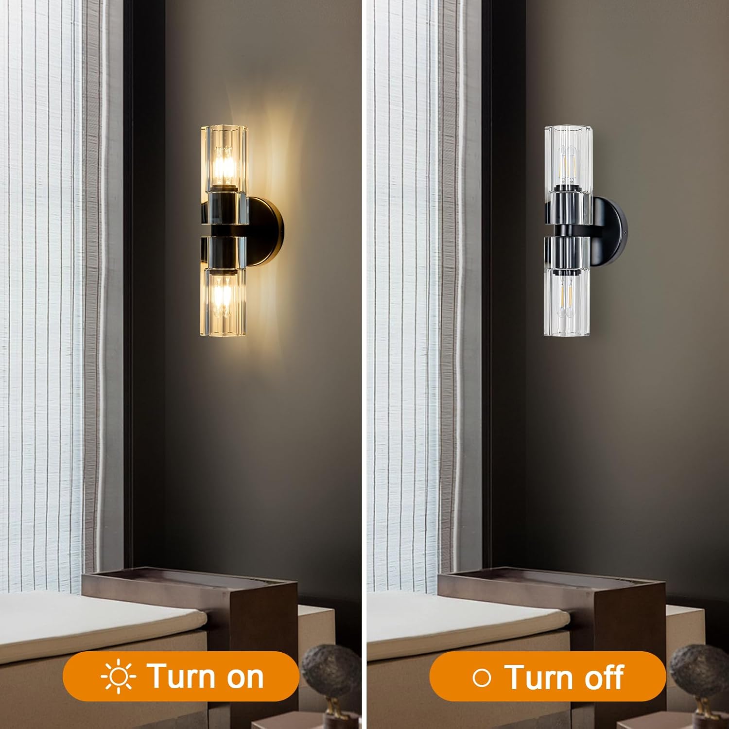 - Includes Bulbs: Lighting up your space has never been easier! The black wall light fixtures comes complete with 2x E26 bulbs, so you can enjoy beautiful illumination right out of the box. Suitable for Bedroom Living Room Bathroom.Whether you prefer soft, ambient lighting or bright, focused beams, these bulbs provide the perfect balance of warmth and brightness to suit your preferences.