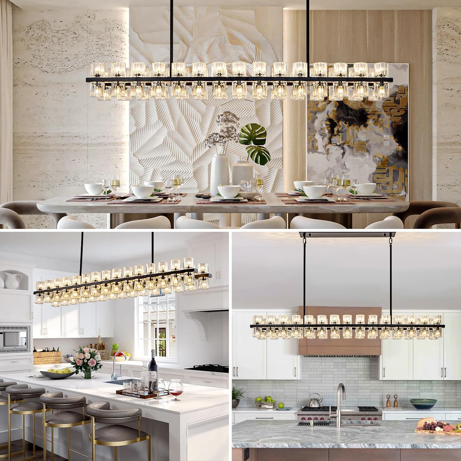 Crystal Black Rectangular Chandelier Light Fixture,54 in Dining Room Chandeliers Over Table,Modern Chandeliers For Living Room,Arcachon Chandelier,Kitchen Island Chandeliers Includes 60xG4 Bulbs