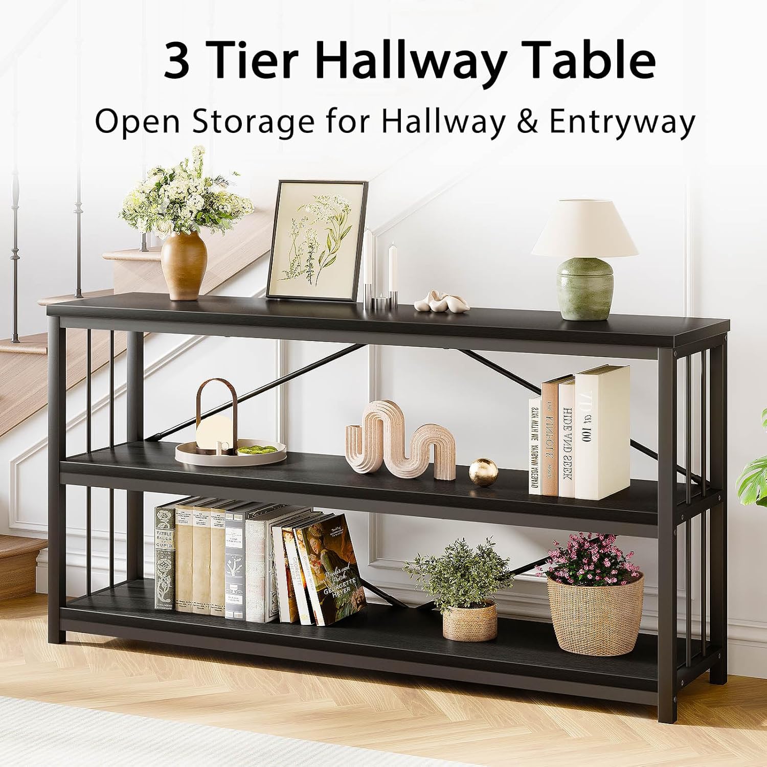 - Versatile and Practical: This black console table is not just decorative, but also serves as versatile furniture. The top tier is great for cups and remote controls, while the middle and bottom tiers are ideal for books, electronics, and more.