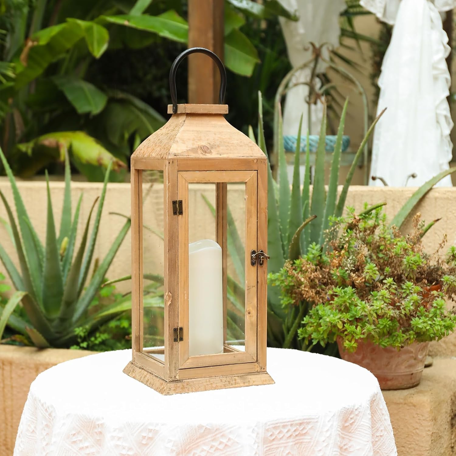 - 【A Great Decoration for Your Home】 This decorative candle lanterns will spice up your tabletop, shelf, stairs, pathway, wall, patio, or porch. Use this lantern indoors or outdoors. The combination of New Zealand pine wood and glass creates a sophisticated piece.