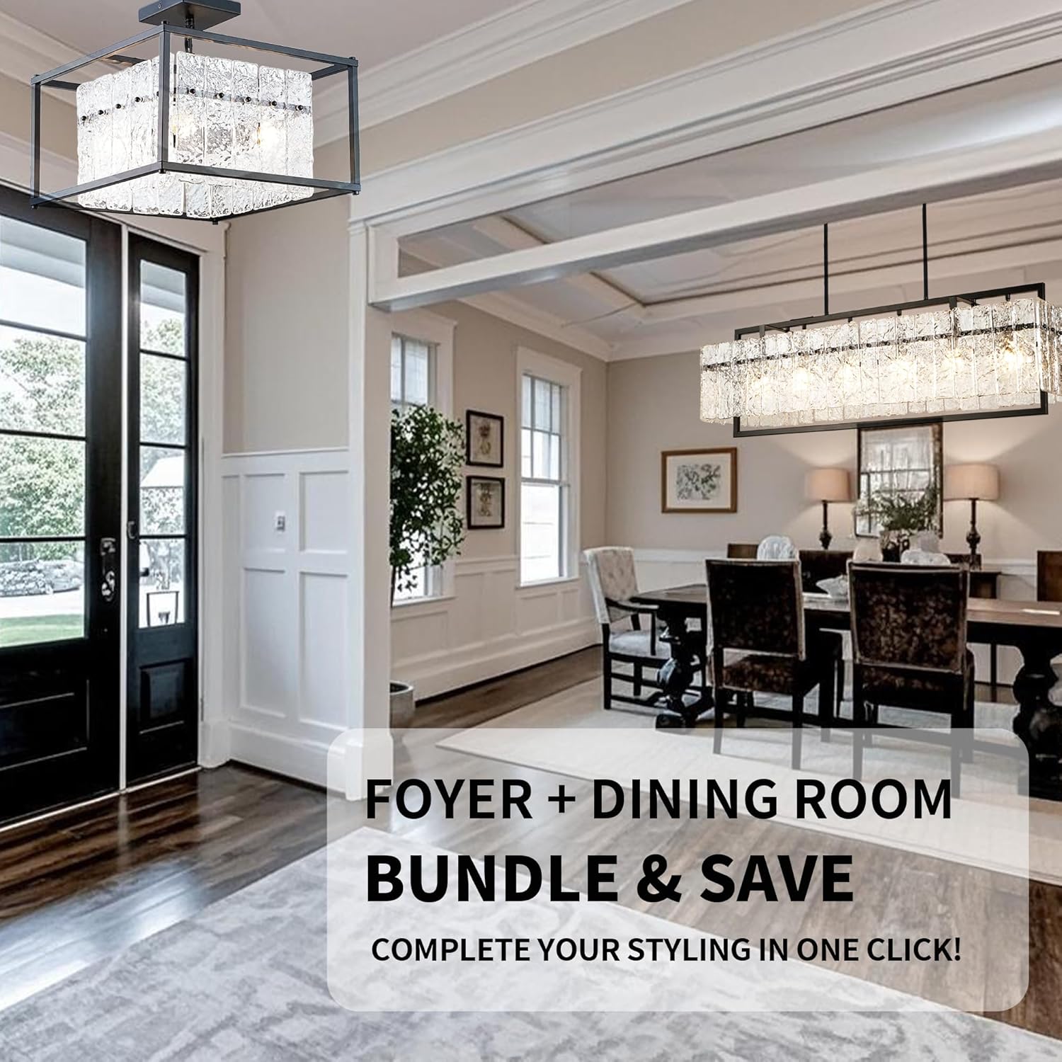 IKK Modern Foyer Chandelier, Black Crystal Chandelier for Dining Room, Square Entryway Light Fixture Hanging, Easily Adjustable Height Glass Chandeliers for Kitchen Island, Elegant Water Ripple