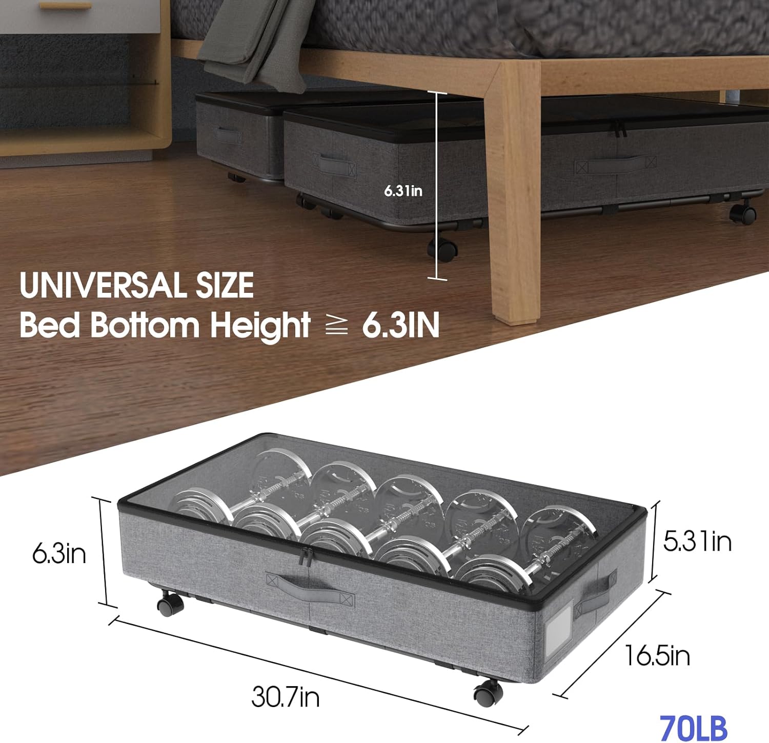 - 【 Large lockers】Measuring 30.7 x 16.9 x 5.7 inches and low enough to fit under most beds, this underbed storage solution keeps your under-bed space tidy. Under bed storage bins on wheels help keep clothes, shoes, books, toys, and bedding organized so that there are no more messy clothes on the couch or bed, and you won't let your cat or dog make a mess under the bed.