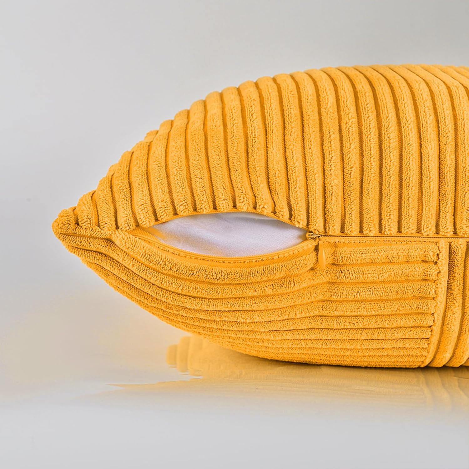 Fancy Homi 2 Packs Gold Yellow Lumbar Decorative Throw Pillow Covers 12x24 Inch for Couch Bed Sofa, Rustic Farmhouse Boho Spring Home Decor, Soft Striped Corduroy Rectangle Accent Cushion Case 30x60cm