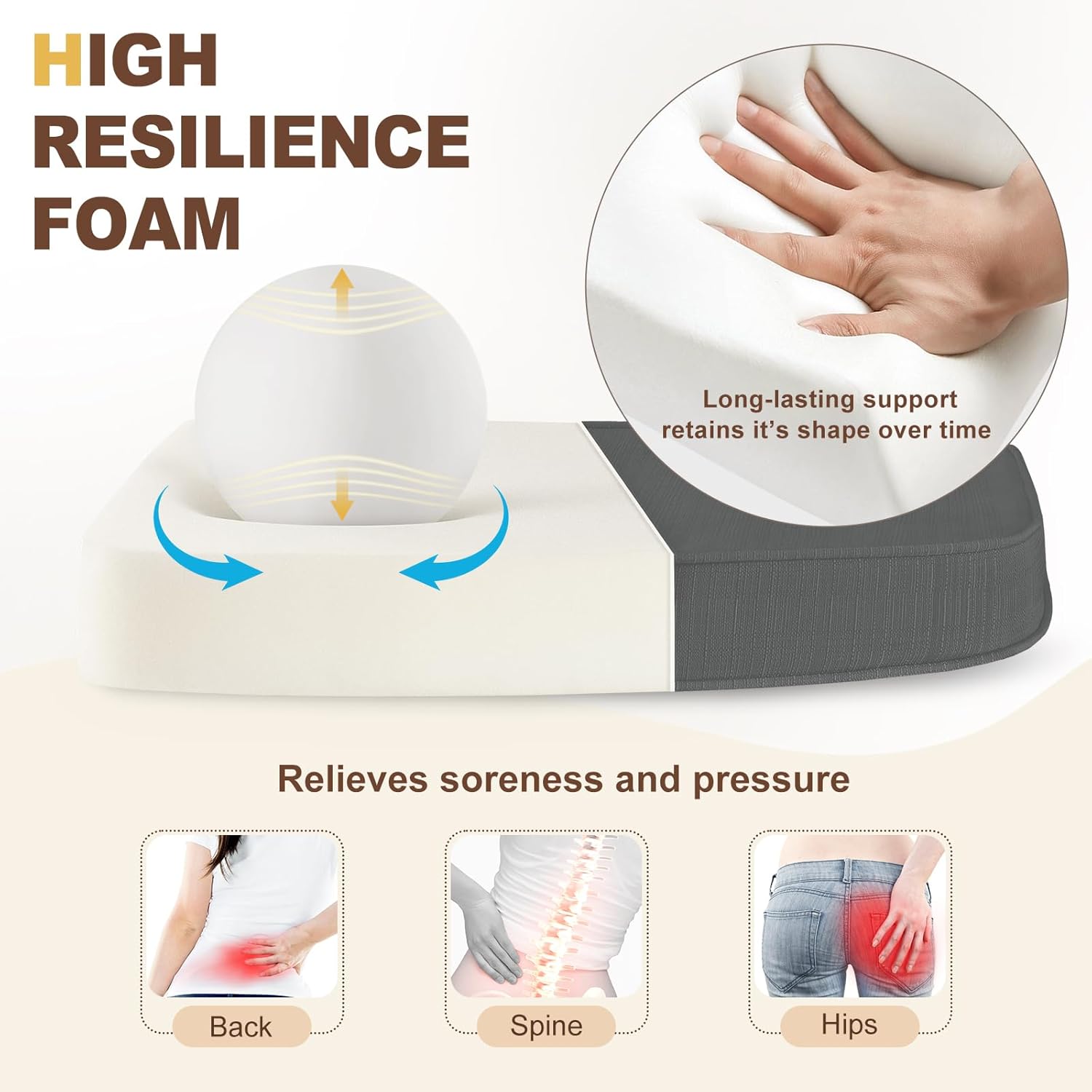- Highly Supportive Foam Filler: Made with premium high-density foam, this dining chair cushion rebounds quickly for superior comfort, reducing discomfort even when sitting on hard chairs. It maintains its shape over time for long-lasting use