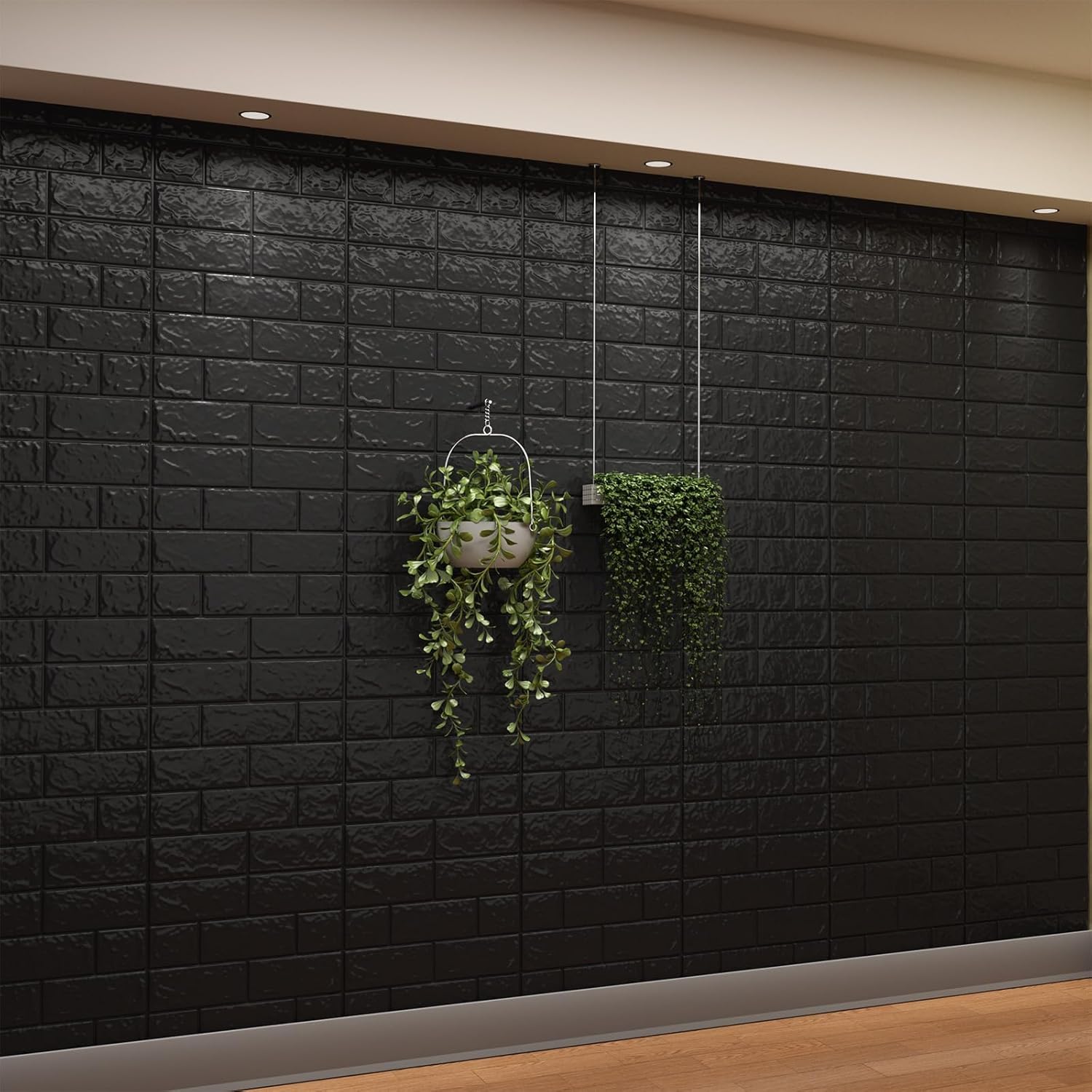 3D Wall Panels Peel and Stick,XPE Foam Stone 3D Wallpaper, Textured Faux Brick Wall Panels Black,30PCS