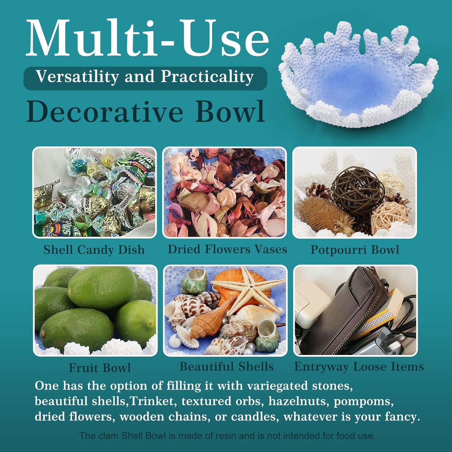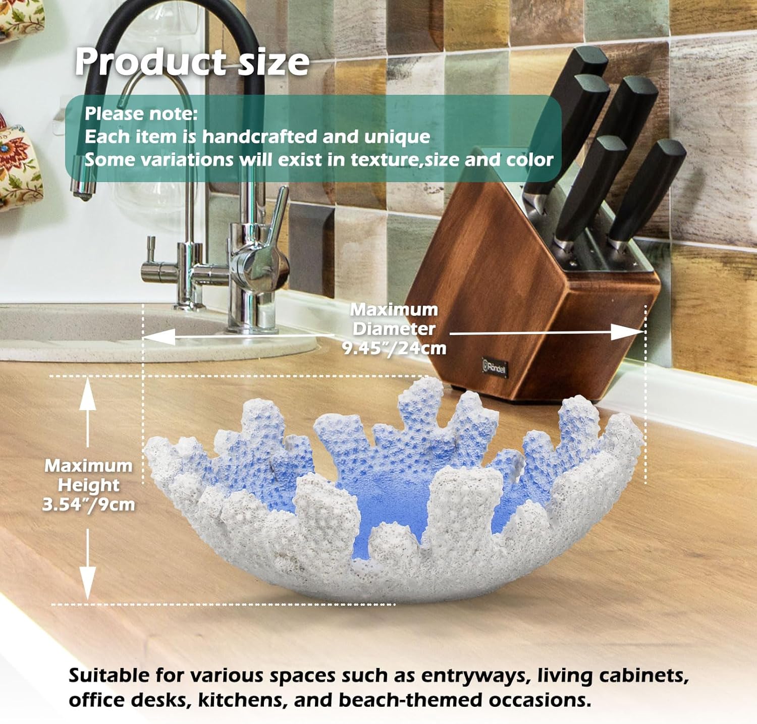 - [Beach coral decorations for home] This Blue coral decorative bowl is inspired by the serenity and allure of coastal living. With soothing hues and natural textures, it brings effortless beach charm to any home. Experience the feeling of being on a perpetual vacation at the seaside, all without exploiting our precious oceans. This coral decorative bowl perfect for modern coastal bowl decor and coastal decor for home