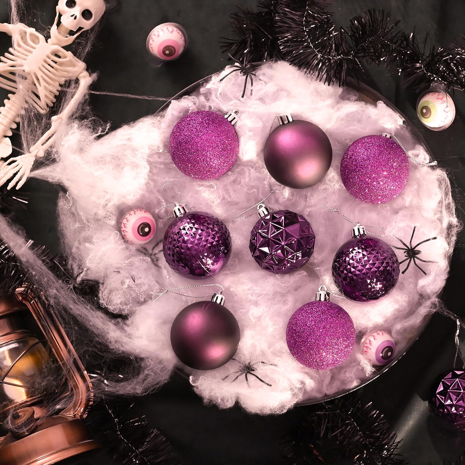 Valery Madelyn Christmas Tree Decorations Ornament Set for Fall Halloween, 50ct 2.36 Inches Purple Shatterproof Christmas Ball Ornaments Hanging Xmas Holiday Party Decor
