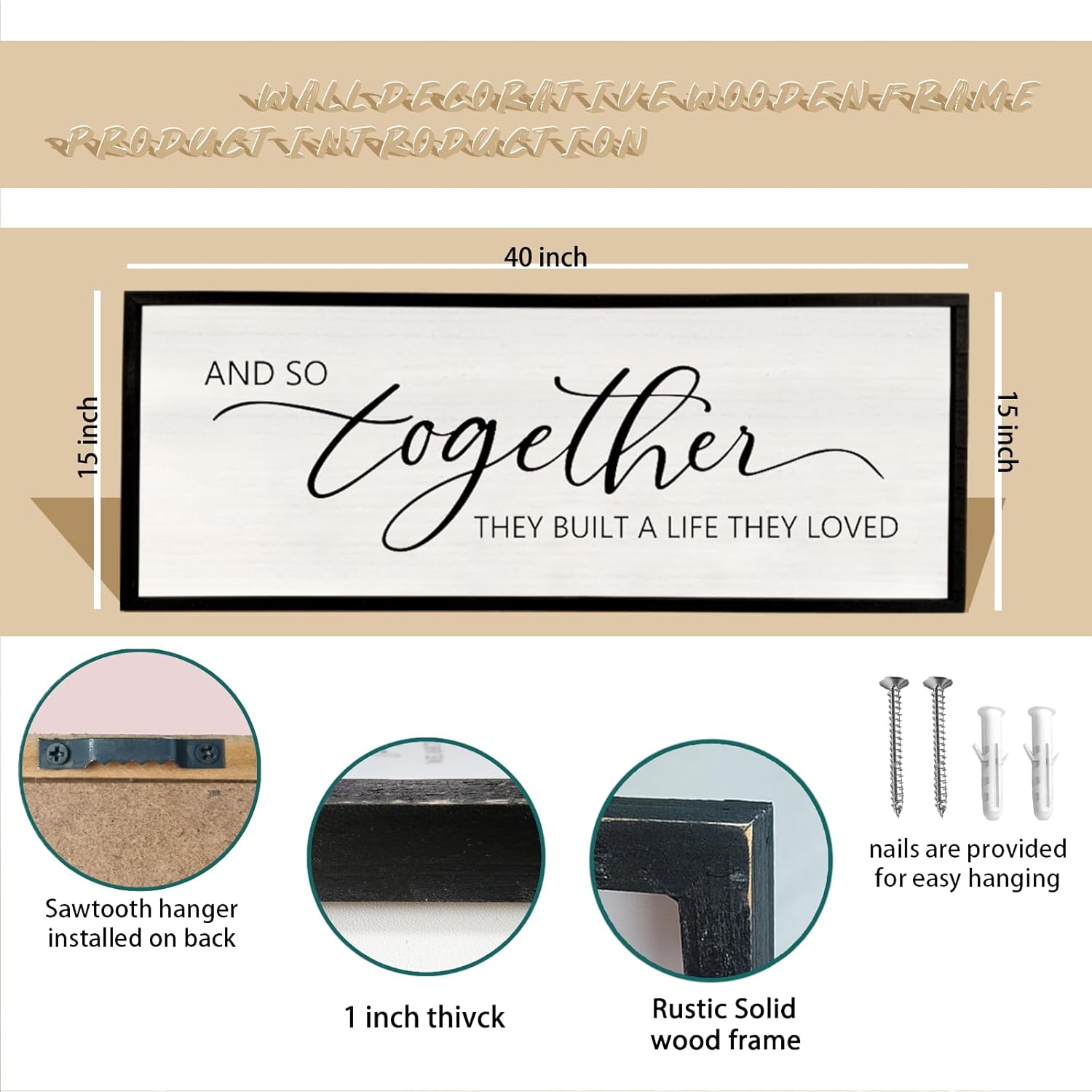 And So Together They Built A Life They Loved Sign 40”X15” Master Bedroom Above Bed Wall Decor Large Framed Wood Farmhouse Sign for Over Bed Bedside Wall Art for Love Sign Decor (Black)