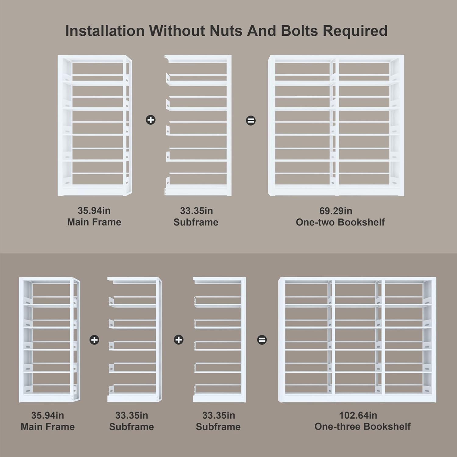 - ăAdjustable BookendsăThere are bookends on the back to stop the books from falling. Size: H68.9*W102.6*D11.8 inch.Taller bookshelves and wider bookshelves.