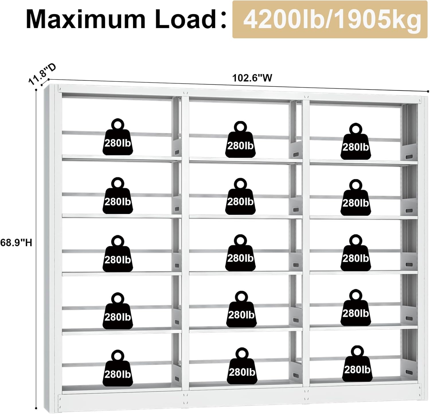 - ăLarge Load-bearing Steel BookshelfăMetal bookshelf Features:Heavy load bearing,Stable,Sturdy,Non-pollution,Long service life.Move multiple installation is not easy to damage.Our bookshelf is made of cold rolled steel and can hold up to 280 pounds per shelf. The ironck bookshelves are better load-bearing than wooden bookshelves and stronger than wooden bookshelves.