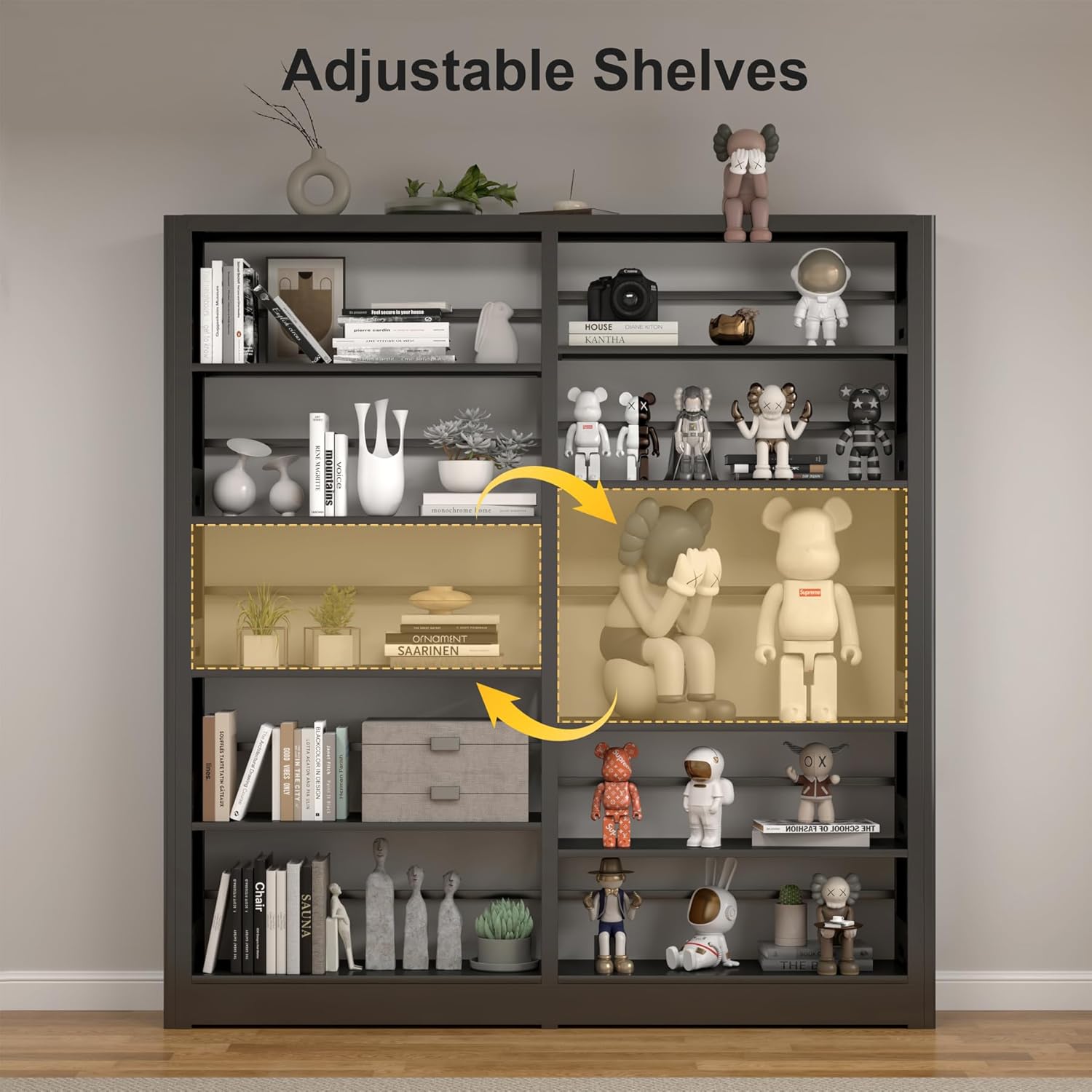 - ăAdjustable ShelvesăThe height of the shelf is adjusted according to your needs and can hold both normal size and large size books. You can also use it as a shelf for tools, toys, and display shelves.