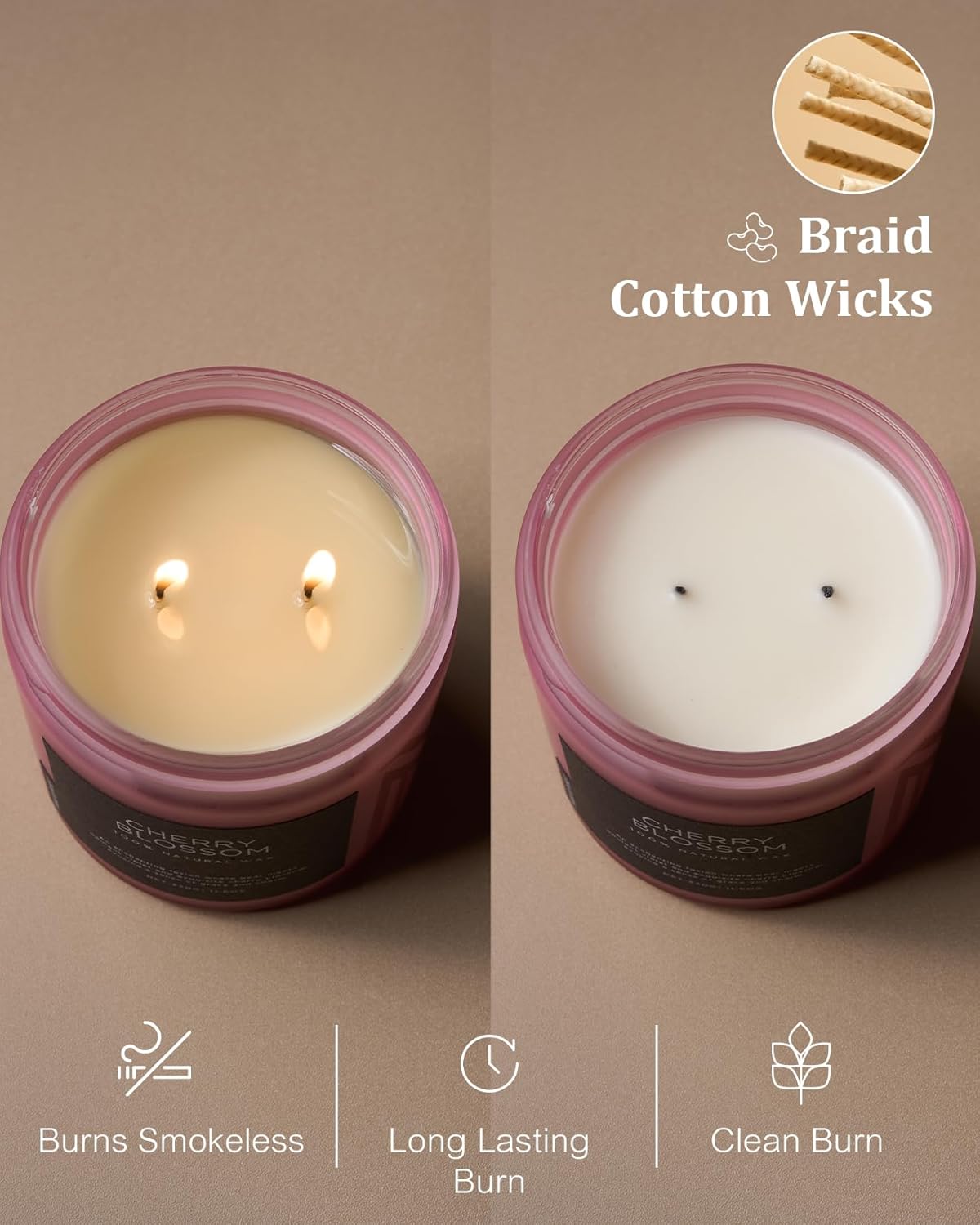 - π³ Clean Consistent & Even Burn - Using 2 American made lead-free cotton wicks for a even burn result. They're cotton flat braid wicks with paper throughout, providing increased rigidity and burn more consistently than 100% cotton wicks. Designed to reduce carbon buildup which leads to black soot.