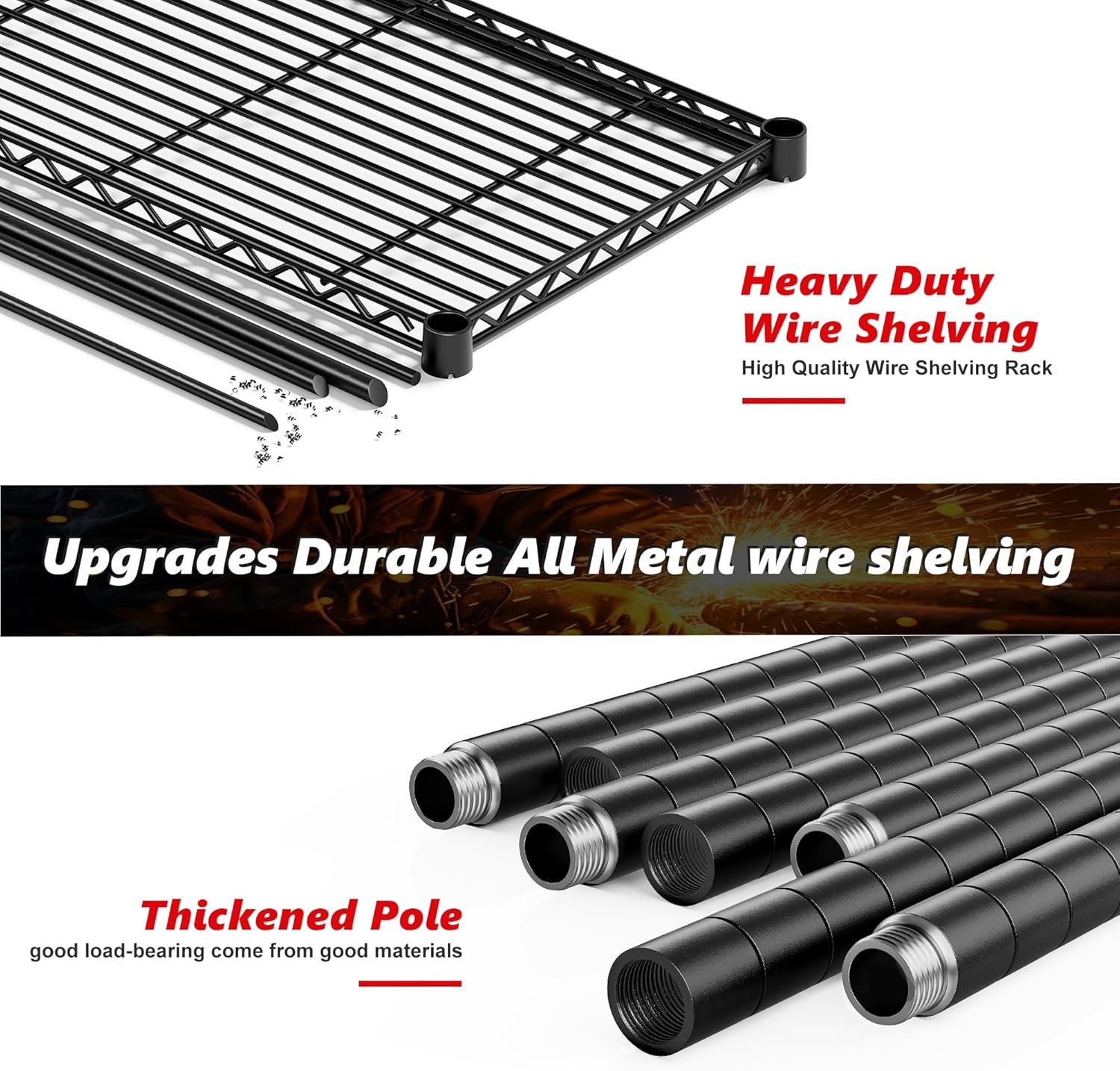 - ă1500 LBS Capacity Super Sturdy Storage ShelvesăThis Metal shelves for storage made of heavy duty steel wire,and has undergone special coating treatment. Every solid thickened industrial shelving with extra stiffener, can easily bear 300LBS a total of 1500 lbs bearing capacity. which means this metal shelving units and storage will always be your reliable partner.