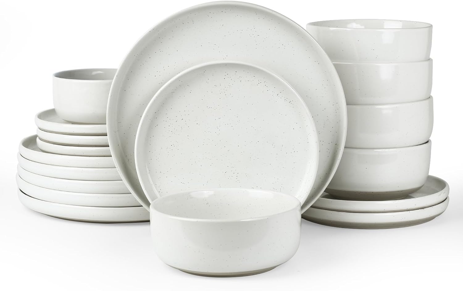Famiware Milkyway Plates and Bowls Set, 18 Pieces Dinnerware Sets, Dishes Set for 6, White