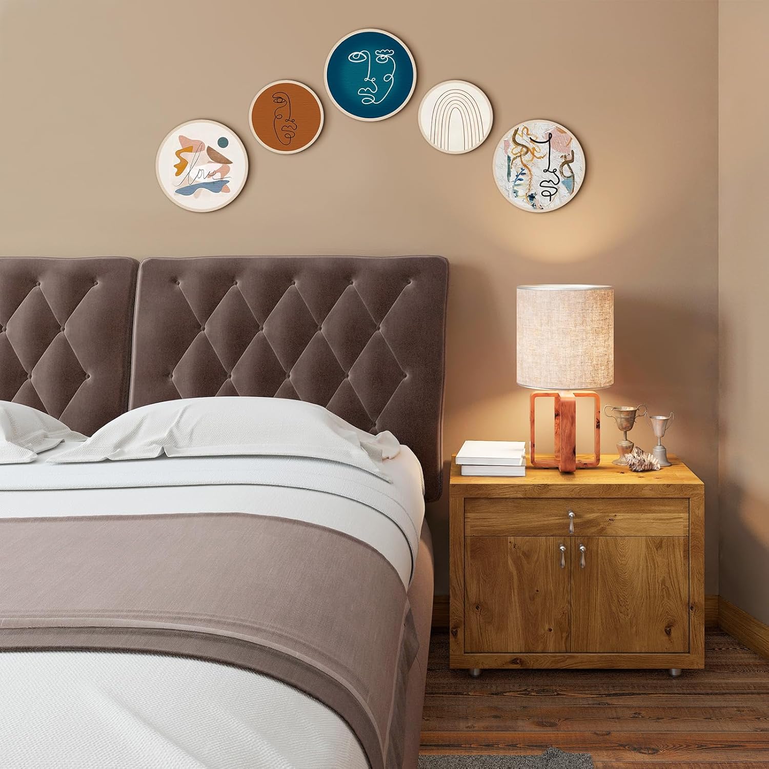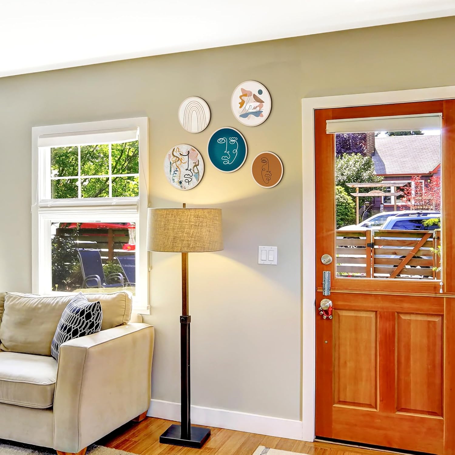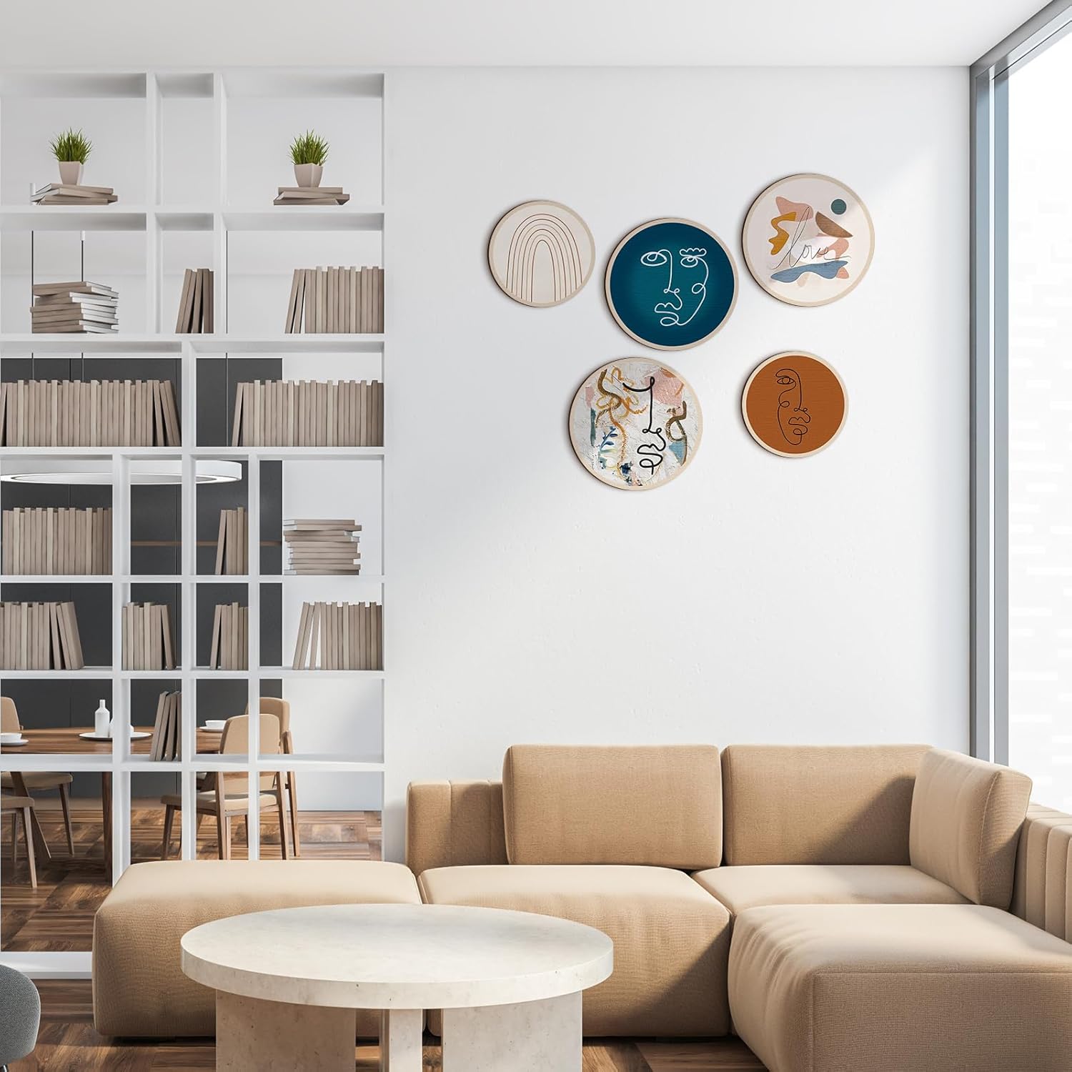 - Proper Size for Display: there are 2 kinds of sizes of the aesthetic wall art, 3 bigger ones measure about 10 inches/ 25 cm in diameter, and 2 smaller ones are about 8 inches/ 20 cm in diameter, all of them are about 0.2 inch/ 0.5 cm in thickness, proper size to catch people's attention