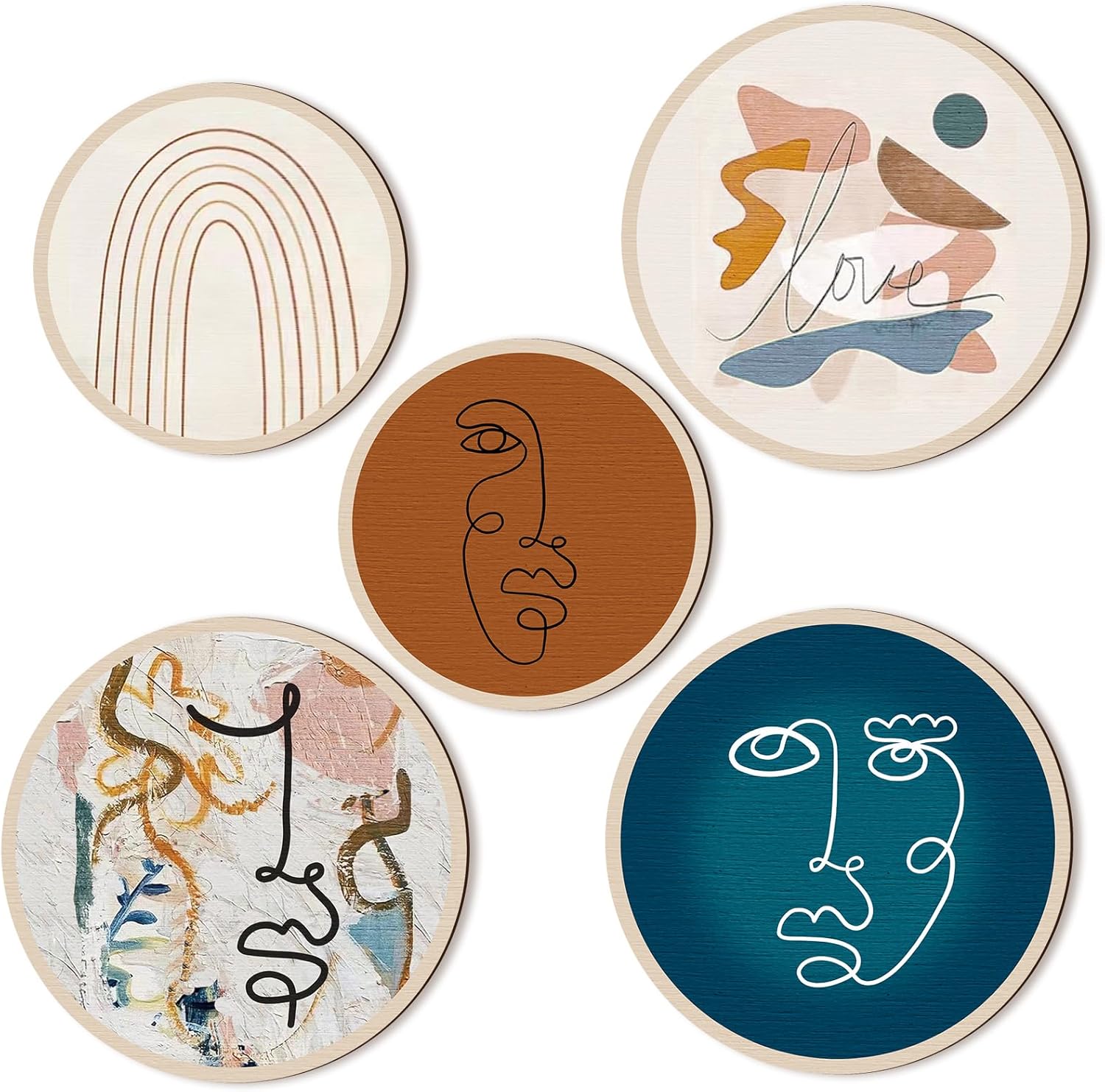 Qunclay 5 Pcs Wall Art Decor Wooden Living Room Wall Decor Bohemian Hanging Farmhouse Geometric 10'' and 8'' Aesthetic Wood Minimalist Posters for Bedroom(Abstract)
