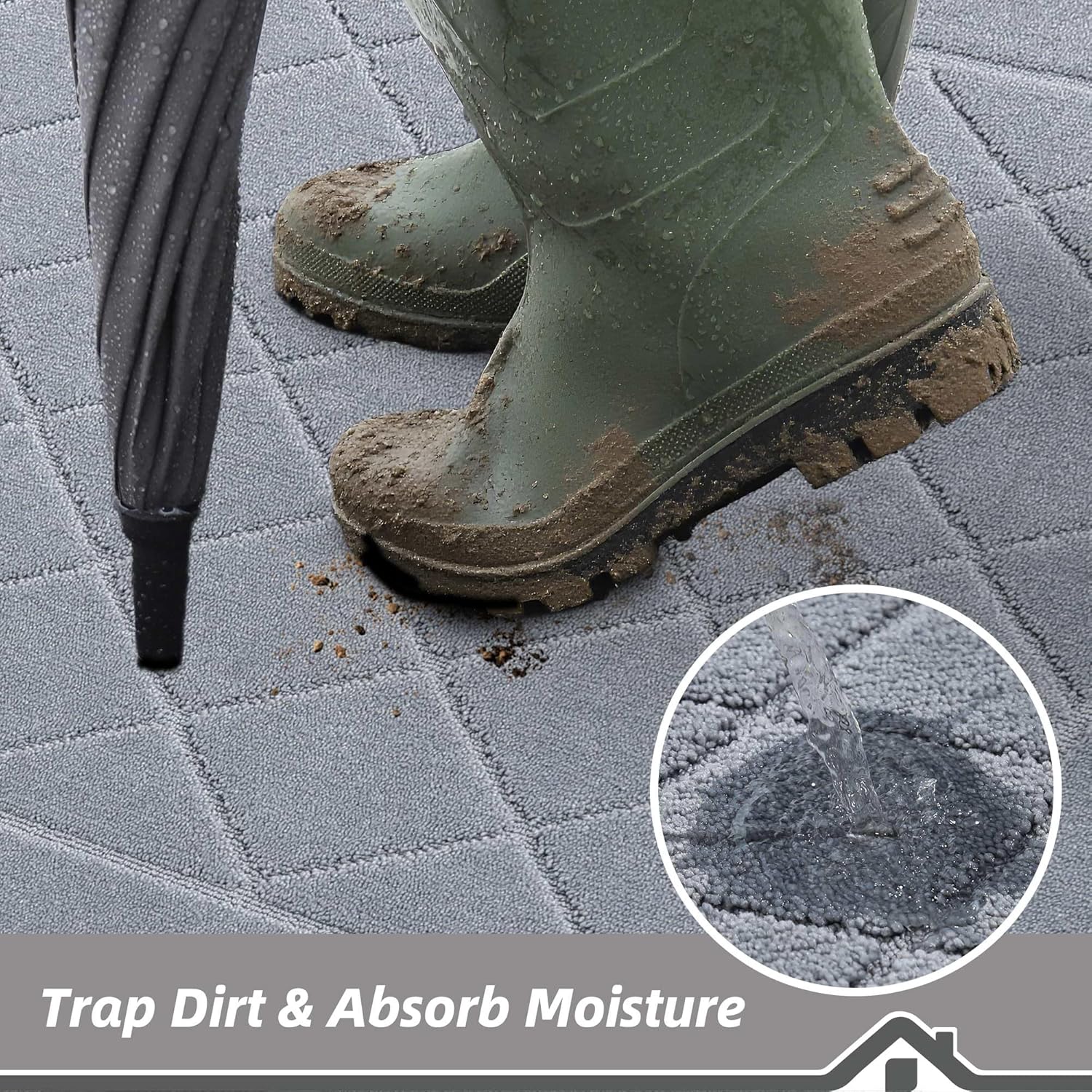 BEQHAUSE Dirt Trapper Door Mat 24" x 36", Doormat Non-Slip Entryway Rugs Washable, Dog Door Mat Stain Resistant and Absorbent Welcome Floor Mat for Front Back Door, Muddy Wet Shoes & Paws, Grey
