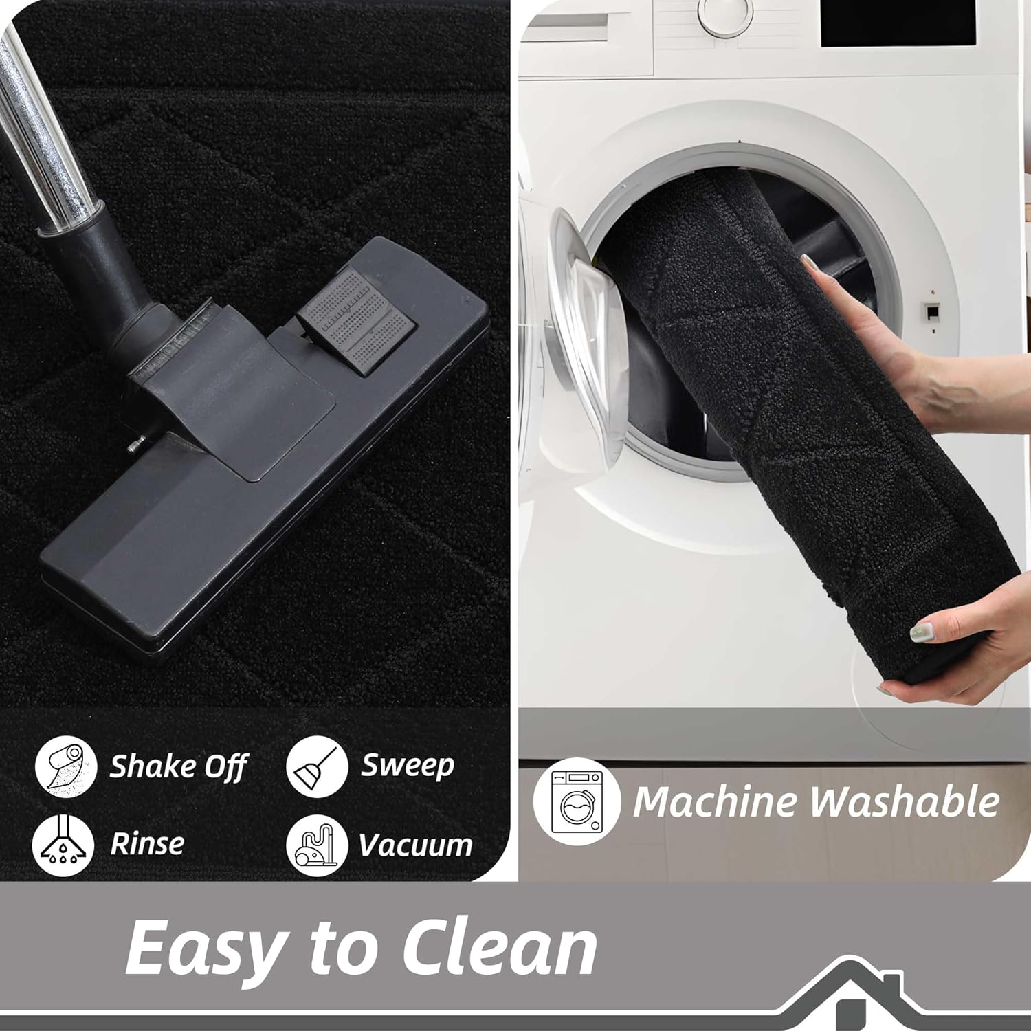 BEQHAUSE Dirt Trapper Door Mat 20" x 32", Doormat Non-Slip Entryway Rugs Washable, Dog Door Mat Stain Resistant and Absorbent Welcome Floor Mat for Front Back Door, Muddy Wet Shoes & Paws, Black