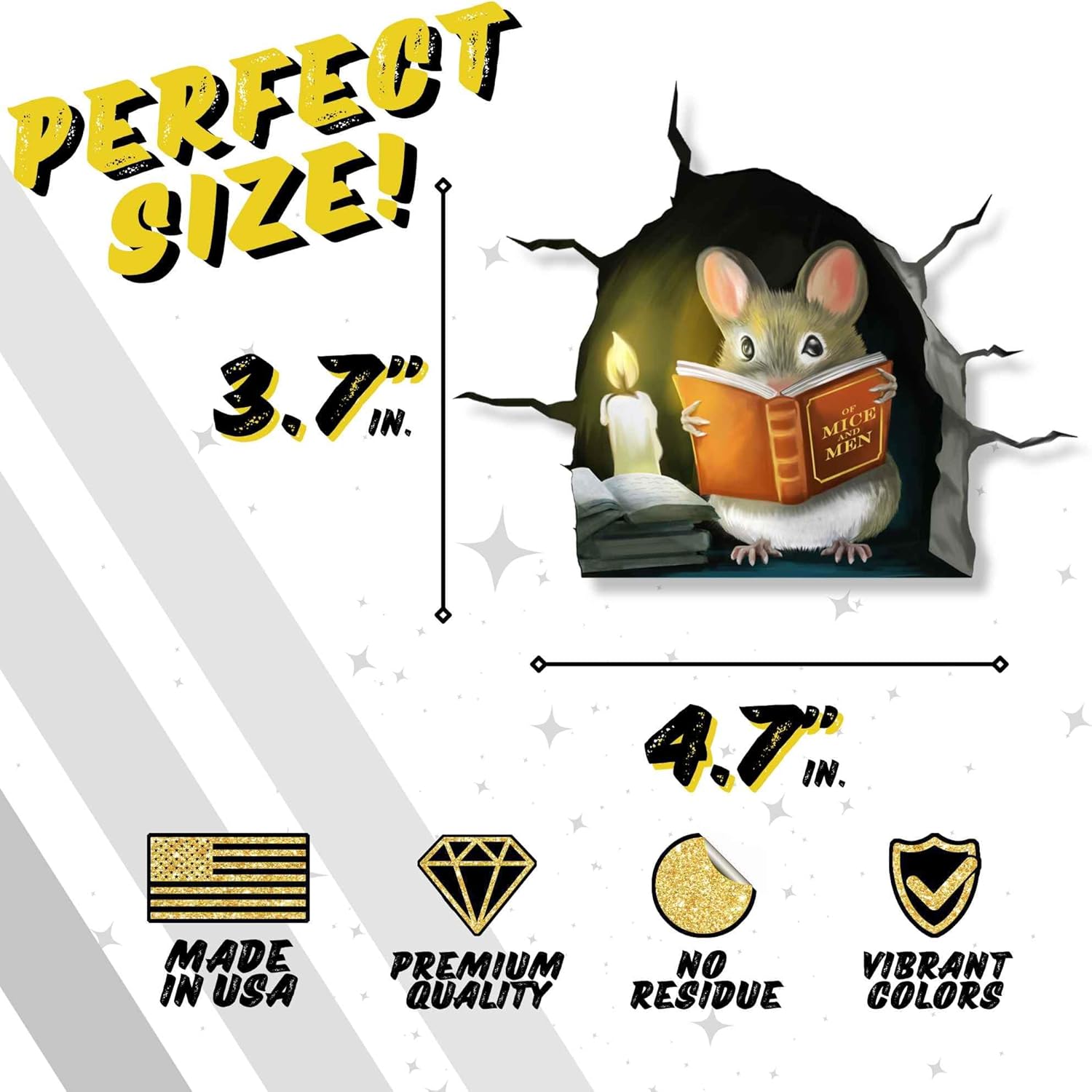 3D Mouse Reading Book in Mouse Hole, Decal Sticker, Removable Wall Decor, Book Lover Gift Idea, Baseboard, Wall Sticker Decal, Kids Room, Classroom, Library