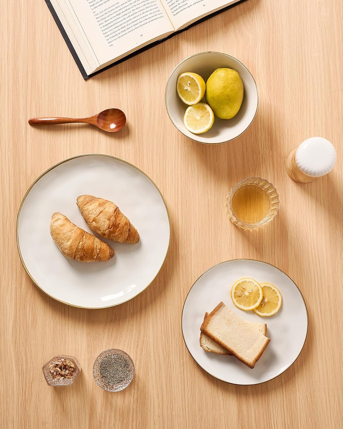 Famiware Ocean Round Plates and Bowls Set, 18 Pieces Dinnerware Sets, Dishes Set for 6, Microwave and Dishwasher Safe, Scratch Resistant, Vanilla White