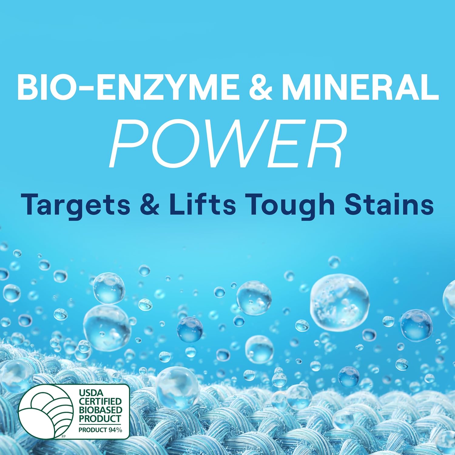 - Made with triple bio-enzymes and mineral power to fight stubborn odors and stains like chocolate, dirt, and grass.