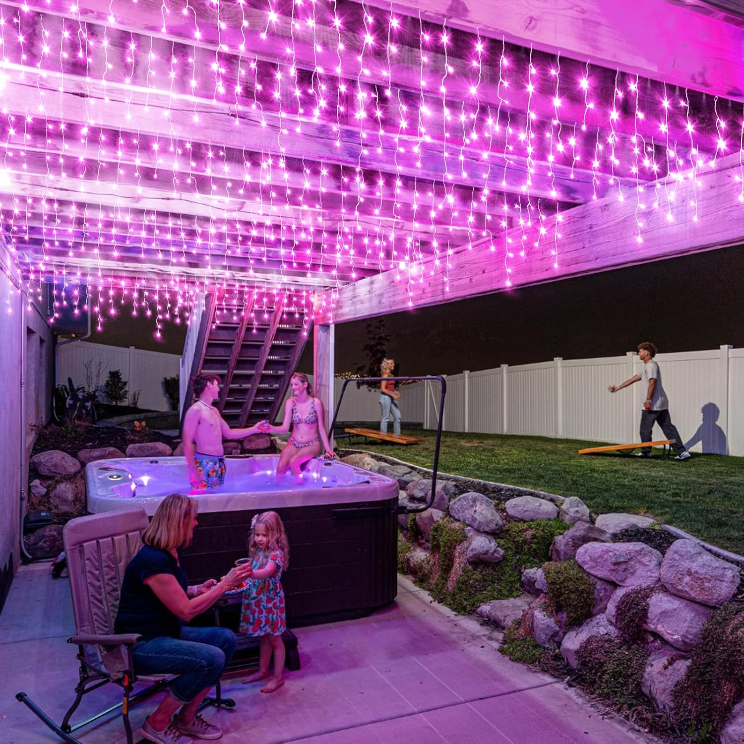- π LED Icicle Christmas Lights: 640LED pink Christma lights totally length is 76ft, including 66ft icicle lights and 10ft extension cord. The outdoor Christmas lights can be connected up to 2 sets to decorate larger areas, suitable for use throughout the year - birthdays, anniversaries, Christmas decoration. The connectable icicle lights can be controlled by one button on the power adapter. Hang these fairy string lights outdoor indoor to create warm and romantic atmosphere for you.