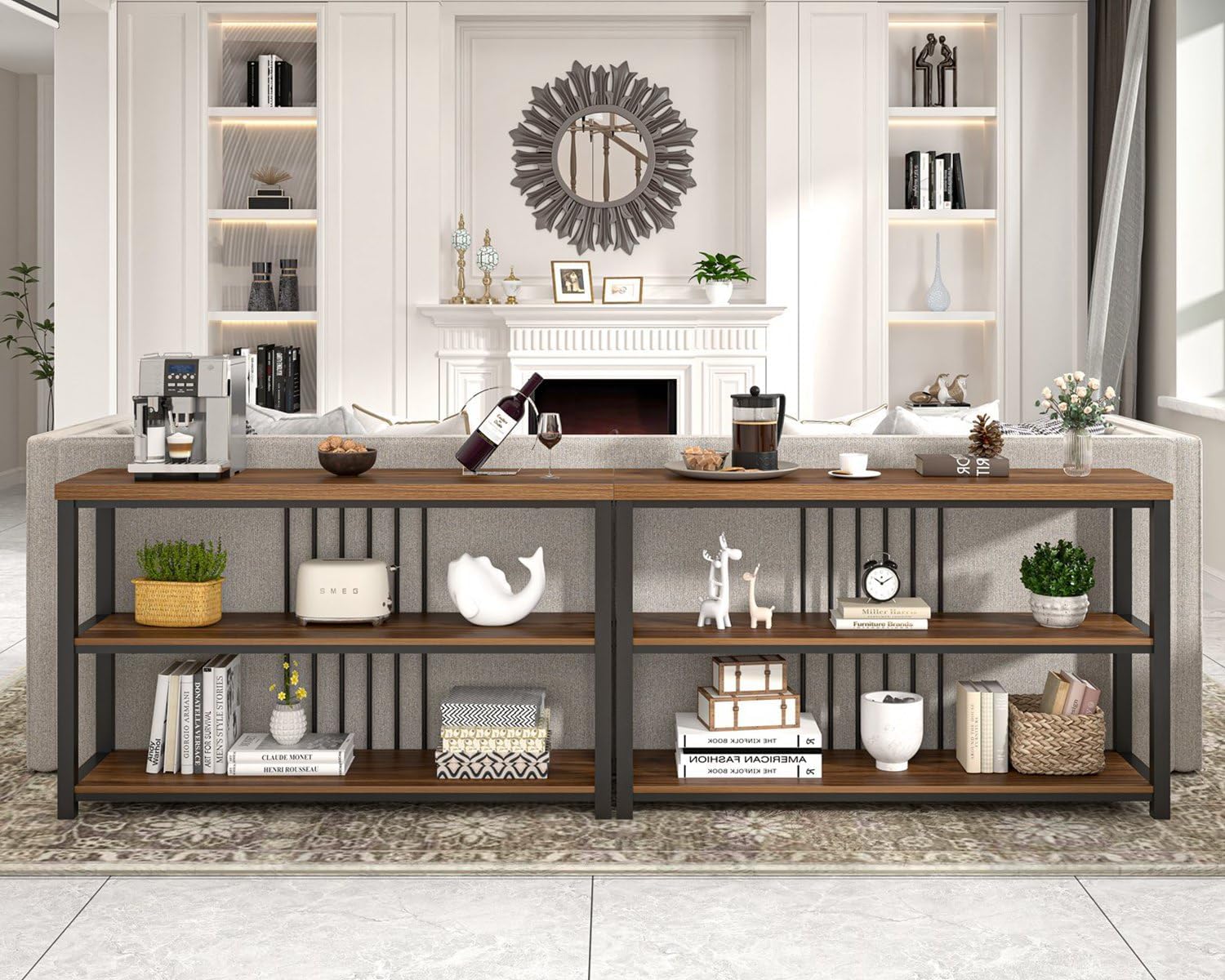 - Versatile: Console tables for entryway, serving as display table, entryway table, hall table, exhibition table, small TV console tables for living room, behind couch table, foyer table, window table, wall tables for living rooms, coffee bar table and open storage shelves. Blends modern and industrial styles, perfect home addition for both functionality and style.