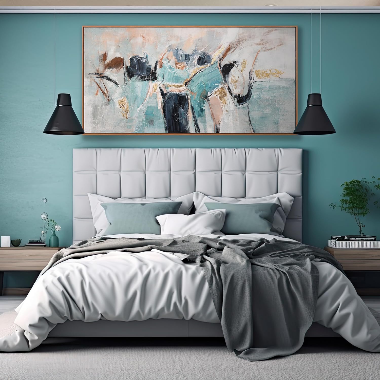 - 【Suitable wall art painting sizes】:This modern art wall decor artwork measures approximately 20*40 inches and comes with pre-installed hooks on the back, making it easy for you to hang it anywhere that suits it.