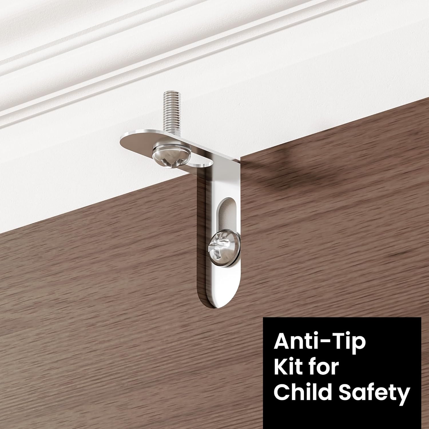 - âANTI-TIP TESTING. Included anti-tip kit can be attached to the wall to provide additional stability. Our panels are certified with CARB Phase 2 compliant: Non-toxic, low-VOC finishes make this bookcase a safe storage space.