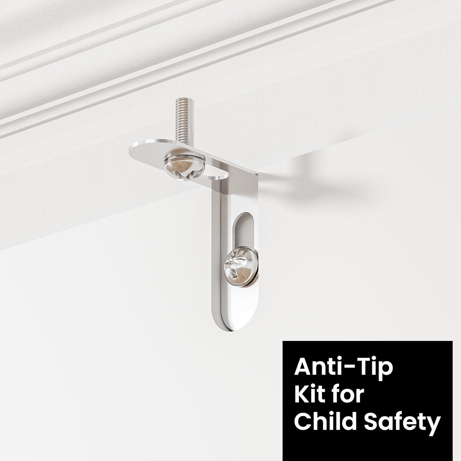 - âANTI-TIP TESTING. Included anti-tip kit can be attached to the wall to provide additional stability. Our panels are certified with CARB Phase 2 compliant: Non-toxic, low-VOC finishes make this bookcase a safe storage space.