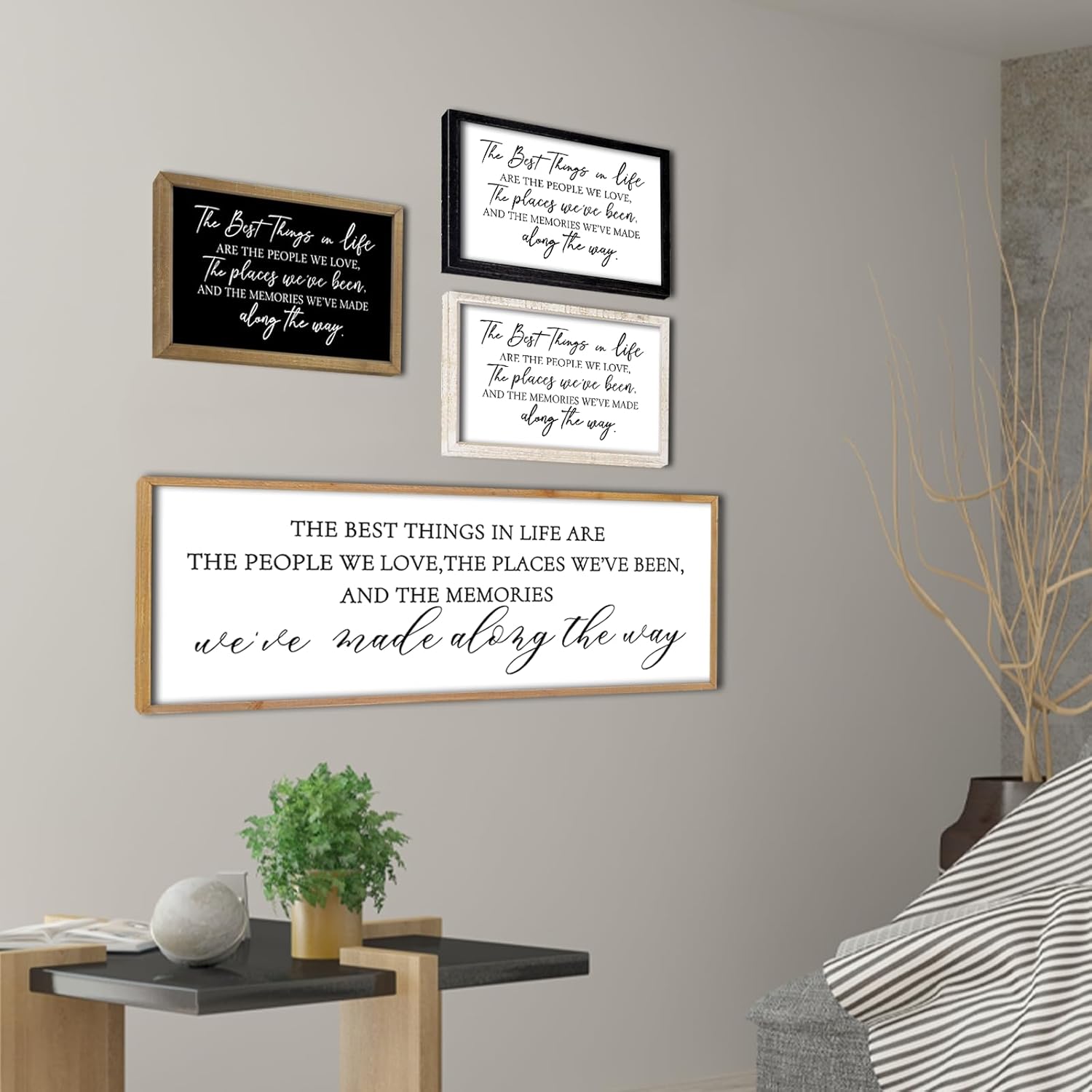 The Best Things in Life Wall Decor Sign 32 x 12 Inch Memories Inspirational Quotes Wood Framed Family Entryway Living Room Home Wall Art for Farmhouse Bedroom Room (Wood)