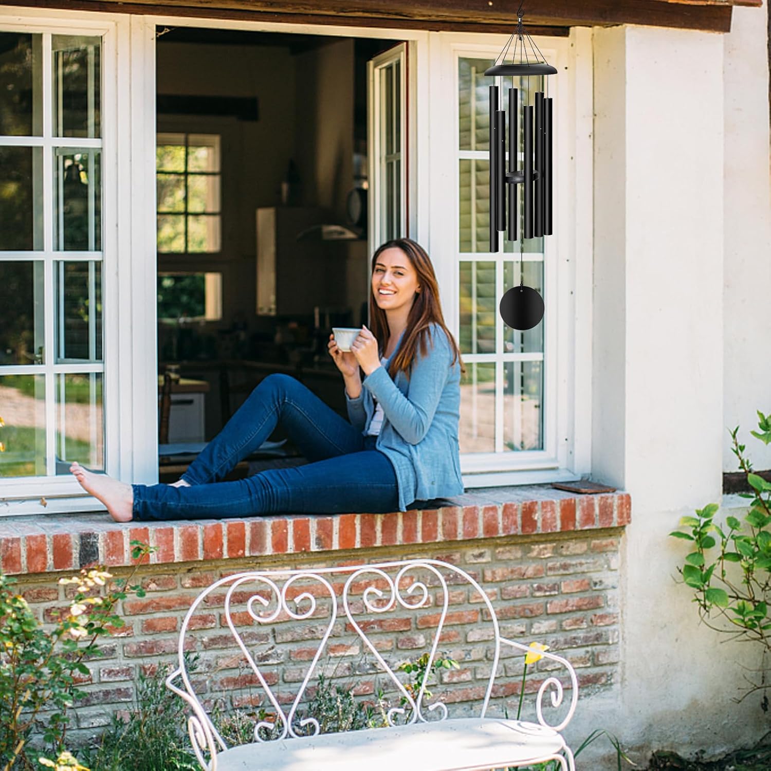- Wind chimes outside - Garden wind chimes are elegant and charming, matt bronze. The total length is 38 inches, and every time the wind blows you will be bathed in lasting harmony. Outdoor inspirational wind chimes are suitable for terraces, balconies, churches, collections, gardens, and home decoration.