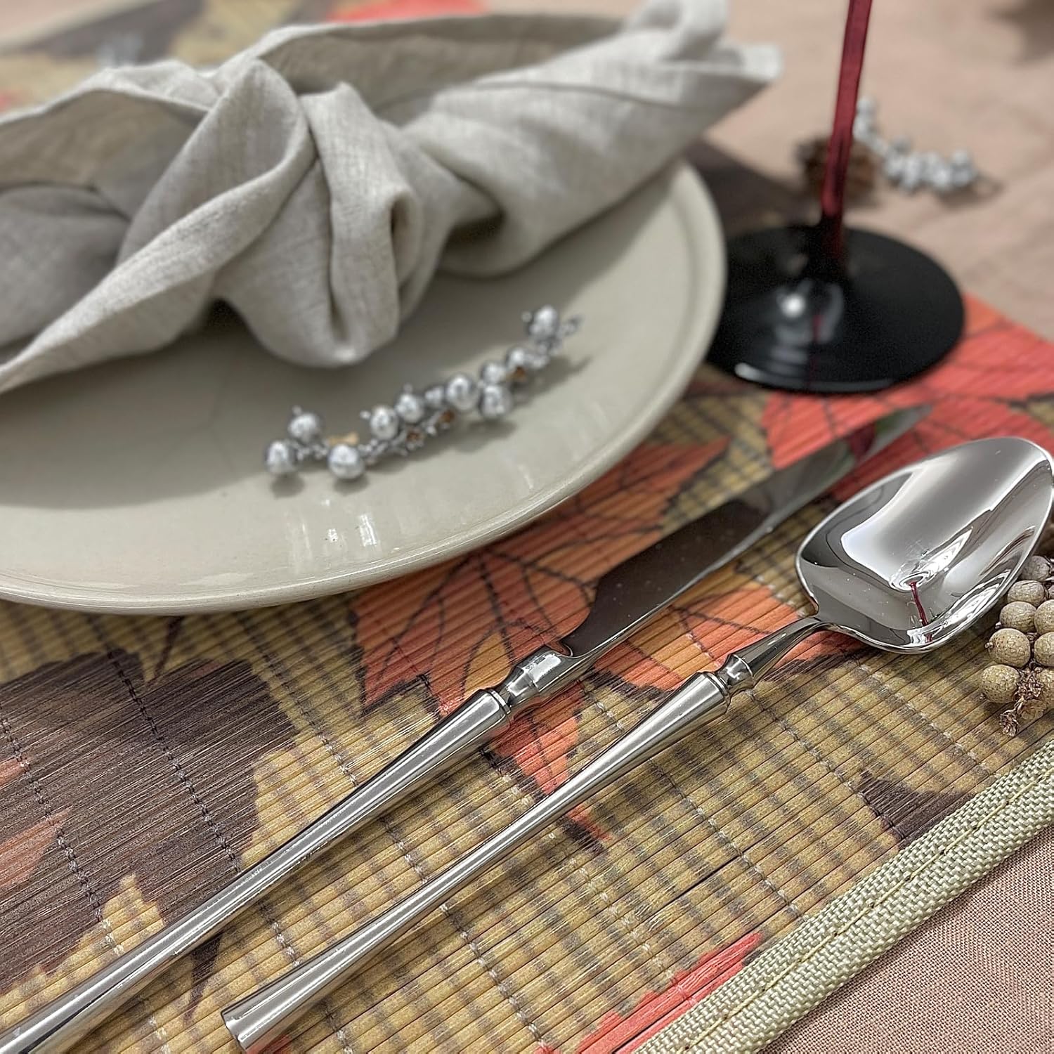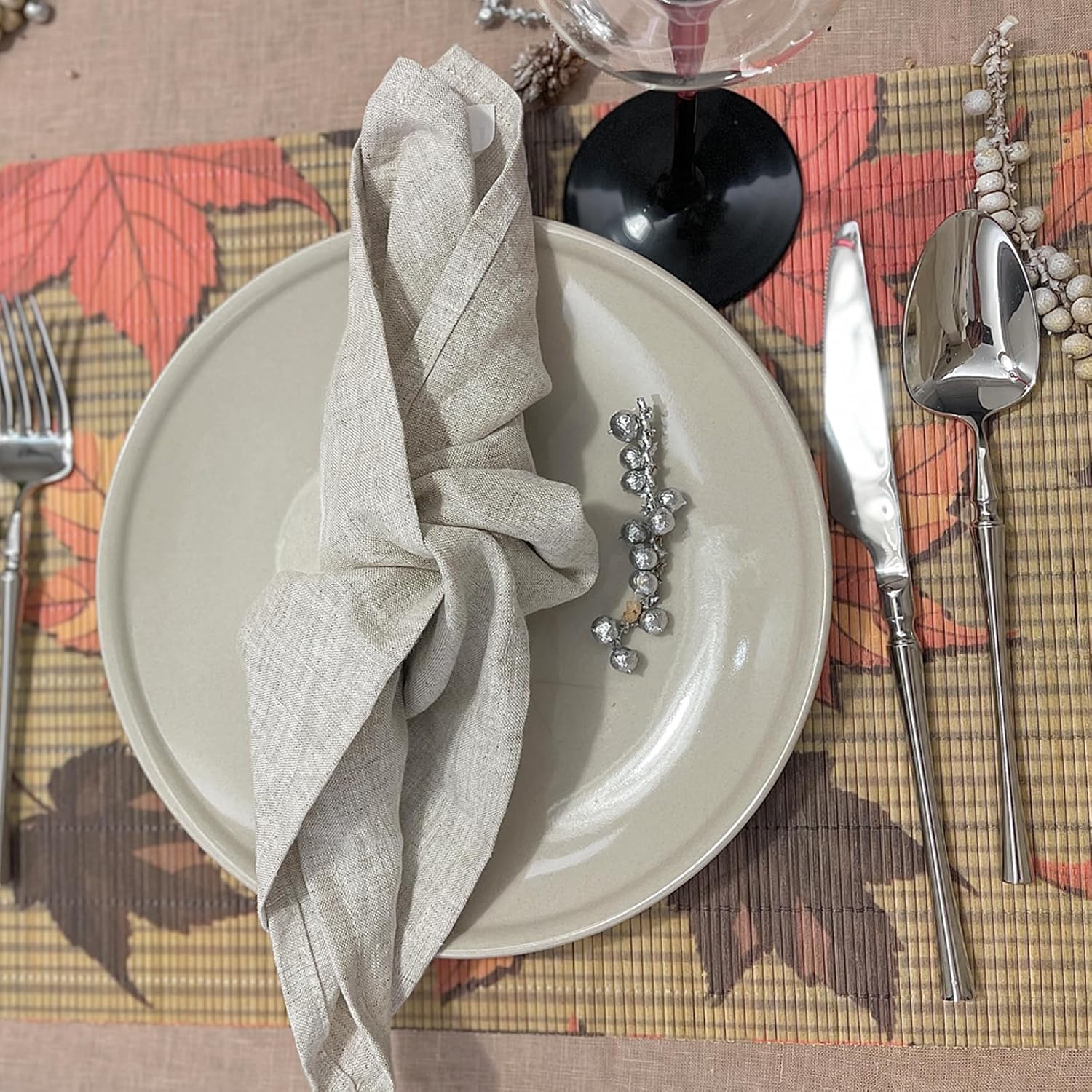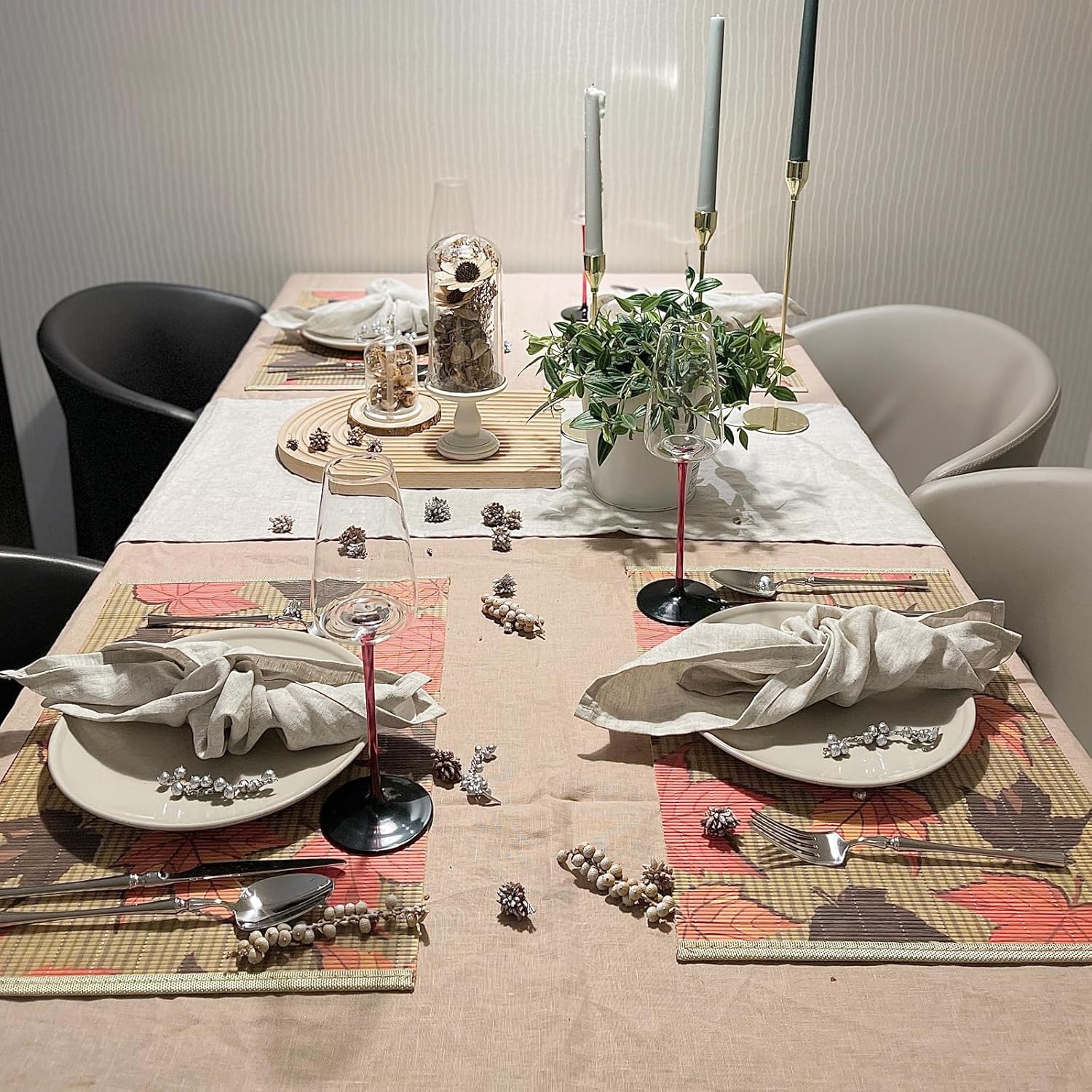 ANDSTAR Set of 8Pcs Bamboo Placemats 17.7X11.8Inch Sushi Rolling Mat Japanese Style Bamboo Mat Place Mats Washable Heat Resistant Table Mats for Dinner Dining Table (Maple Leaves)
