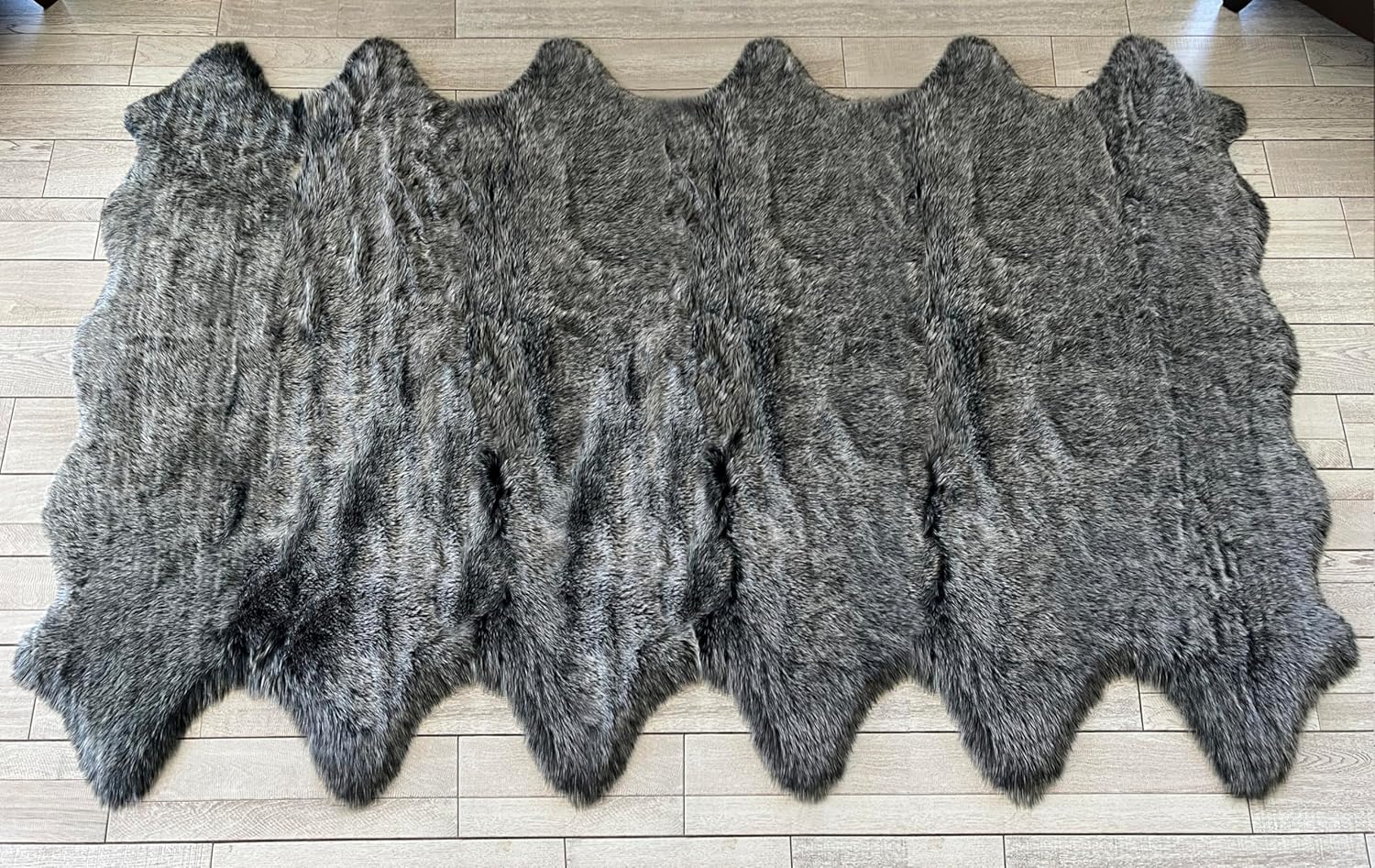 LAMBZY Faux Sheepskin Super Soft Hypoallergenic Free Shape Silky Shag Rug, Luxury Shaggy Plush Carpet for Bedroom Living Kids Room Sofa Rugs (Black with White Tips, Duo Decto 12 Pelts 6'x12')