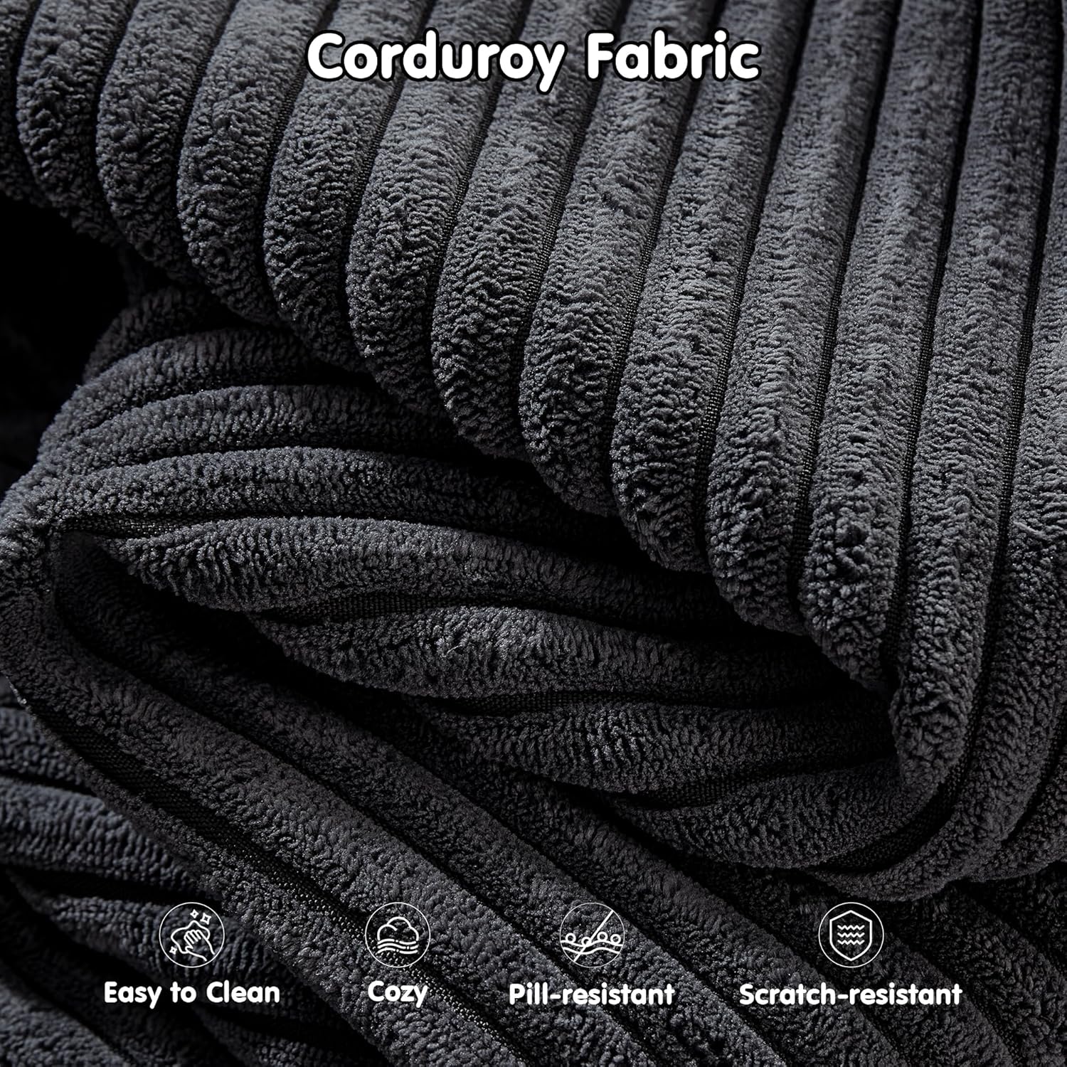 - Corduroy Fabric:Experience the lavish comfort of our enhanced corduroy fabric, offering unmatched softness and warmth. Its impressive durability and stain-fighting prowess keep your sofas looking fresh and lively. With a variety of color choices, our corduroy chaise sofa lets you showcase your unique style while adding irresistible charm to your space