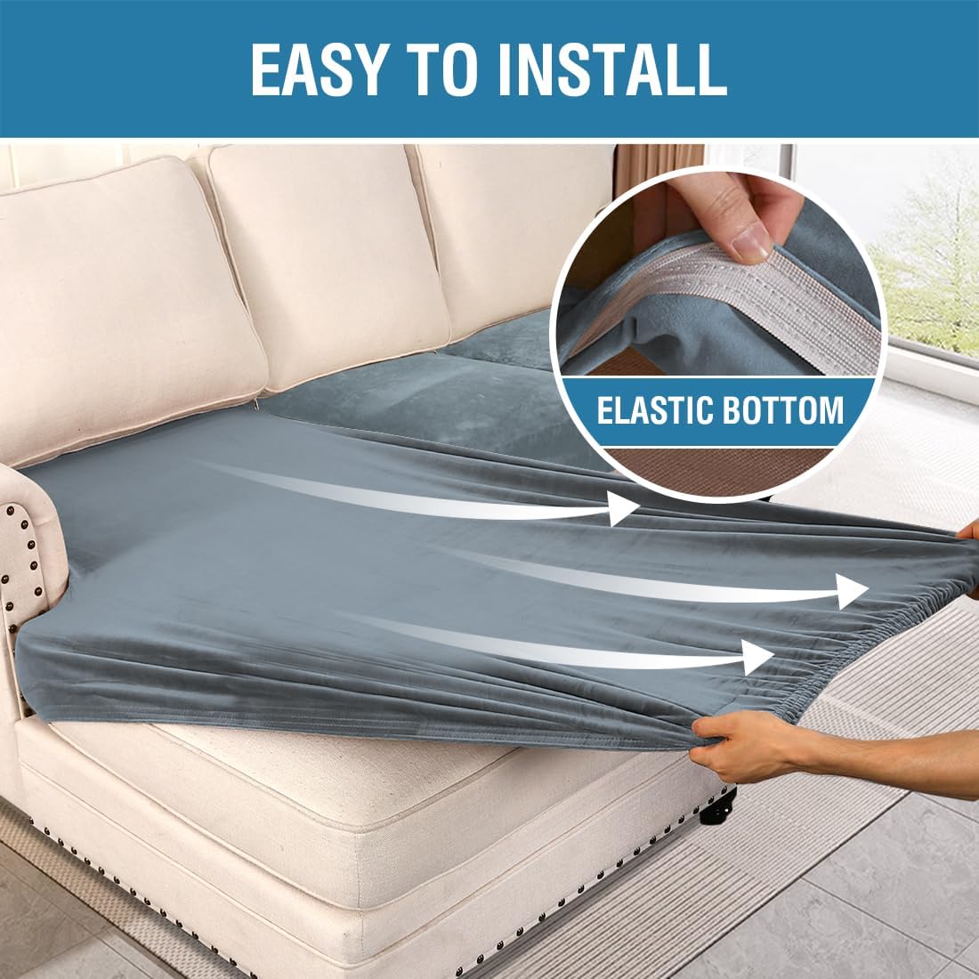 - INCREDIBLY COMFORTABLE VELVET: Products passed GLOBAL RECYCLED STANDARD certificate.This innovated stretch sofa slipcovers are constructed with 3 PIECES,including 1 Chaise cover and 2 individual cushion covers. Crafted from luxurious velvet plush fabric, feature thick, soft, smooth, anti-wrinkle, no fading, durable as well as highly stretch. Protect your cushion furniture from daily wears and tears, stains, kids, scratches from pet claws, dogs or accidental spills