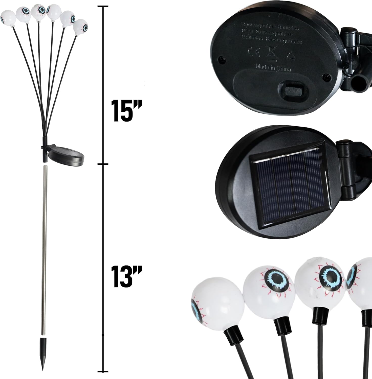 - Package Include: 4 pack 24 LED halloween eyeball lights,The upper section is 15 inches long and the lower section is 13 inches long, exquisite Halloween decorations, to create a scary atmosphere for your Halloween party.