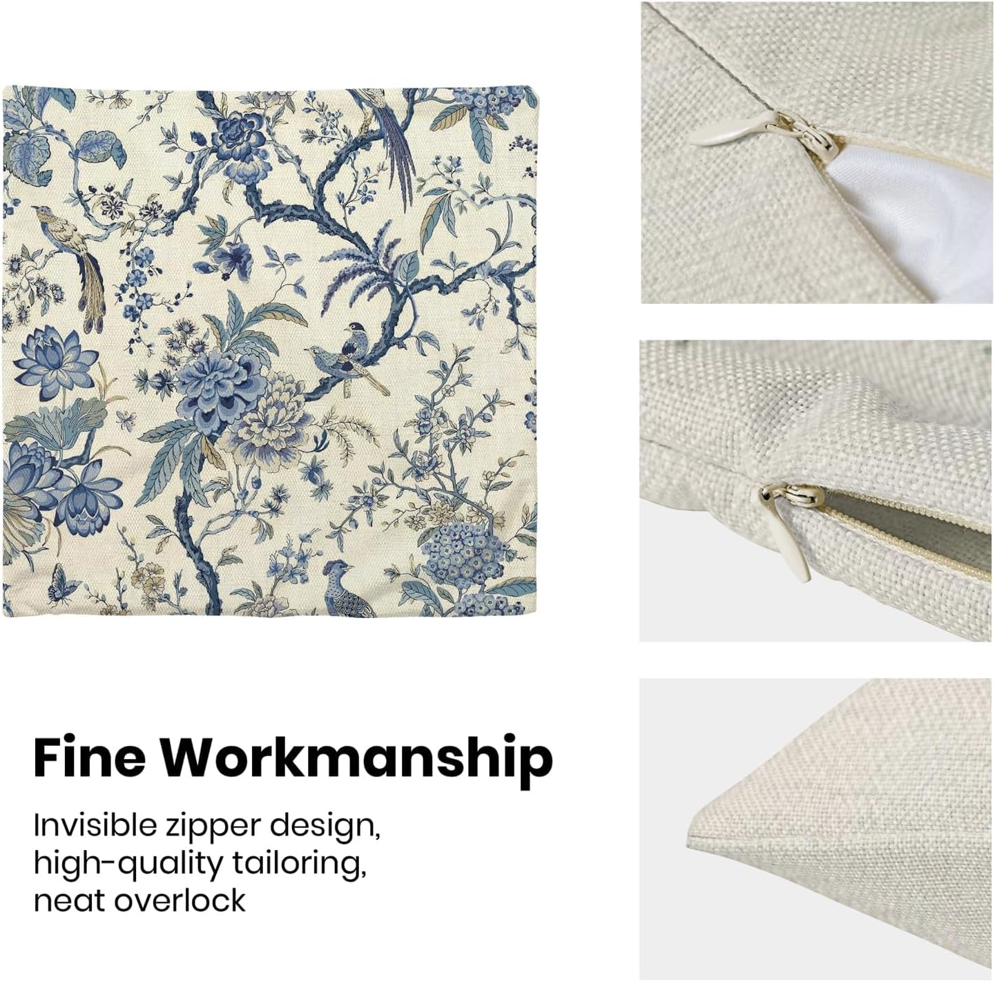 - 【Spring Pillow Covers】 Our Chinoiserie floral throw pillow covers 22x22 inch are made of excellent breathable polyester cotton fabric. The blue and white floral decorative pillow covers is durable, soft and skin-friendly. The plant outdoor pillow covers adopt exquisite edging technology and four sides of our floral pillow covers are sewn firmly, which is not easy to open the line.