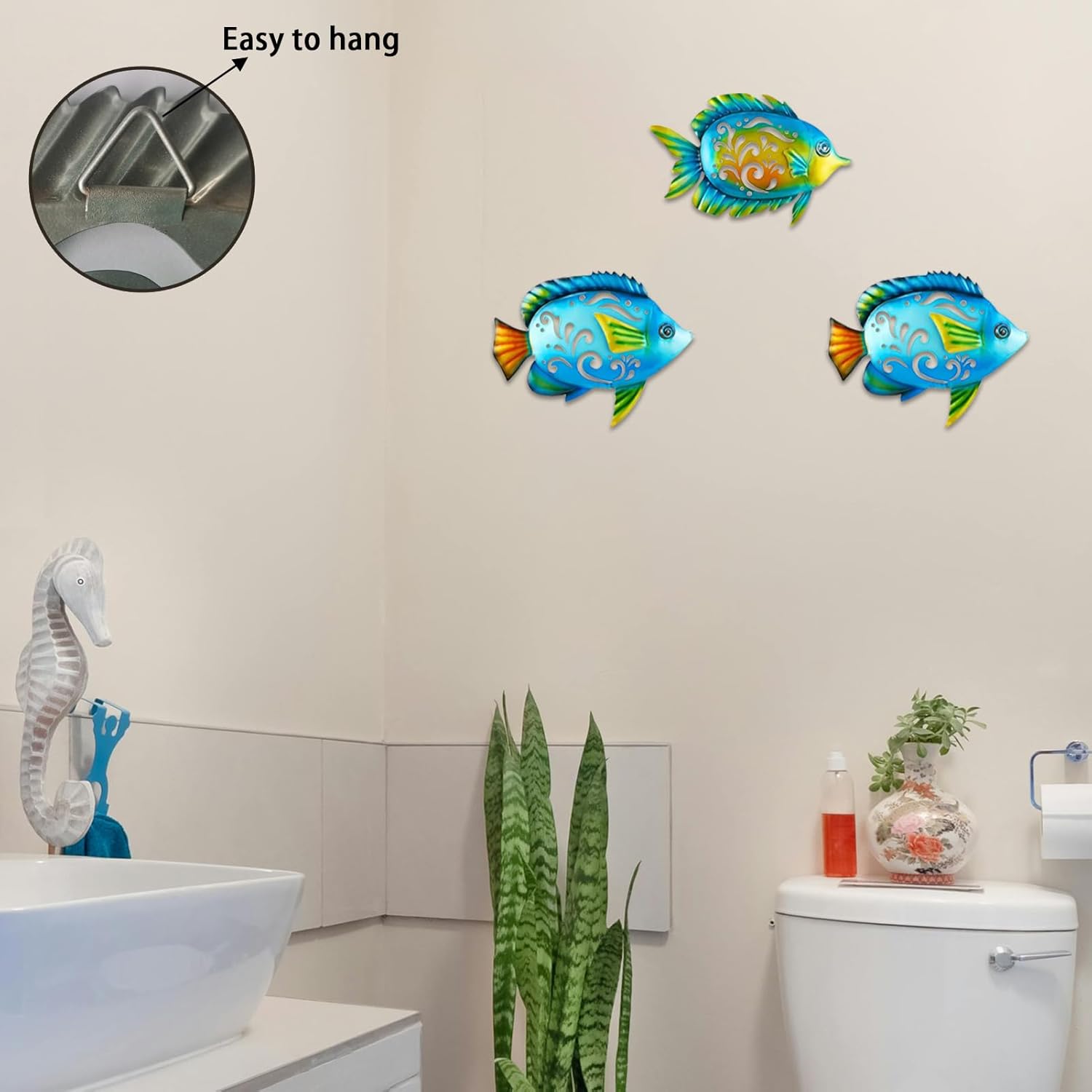 - The tropical fish wall decoration does not require any assembly and has hooks on the back, making it easy to hang on any wall.