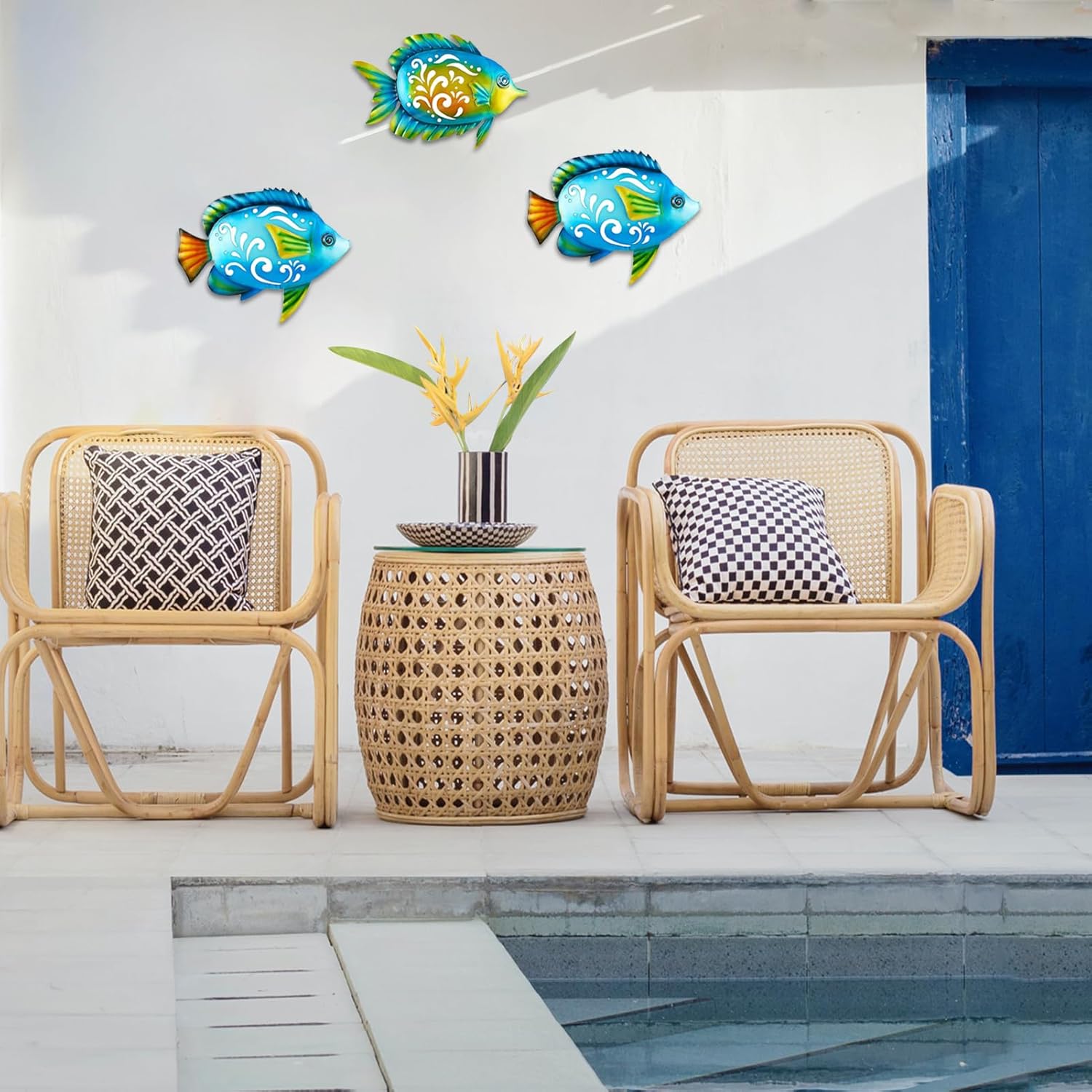 - Fish wall decor, outdoor metal garden hanging art, sculpture home ocean theme decorations